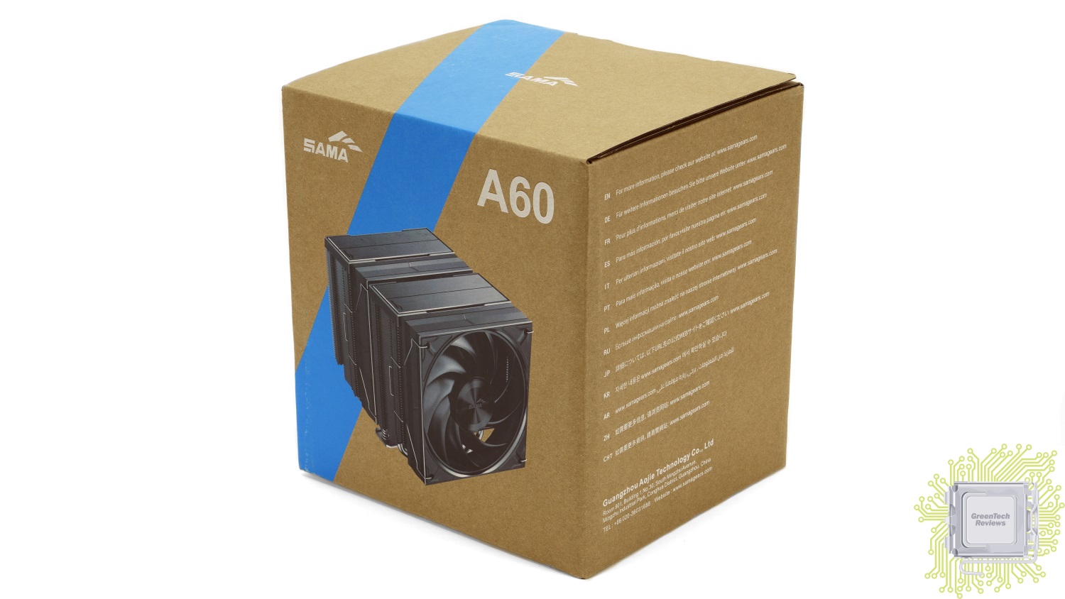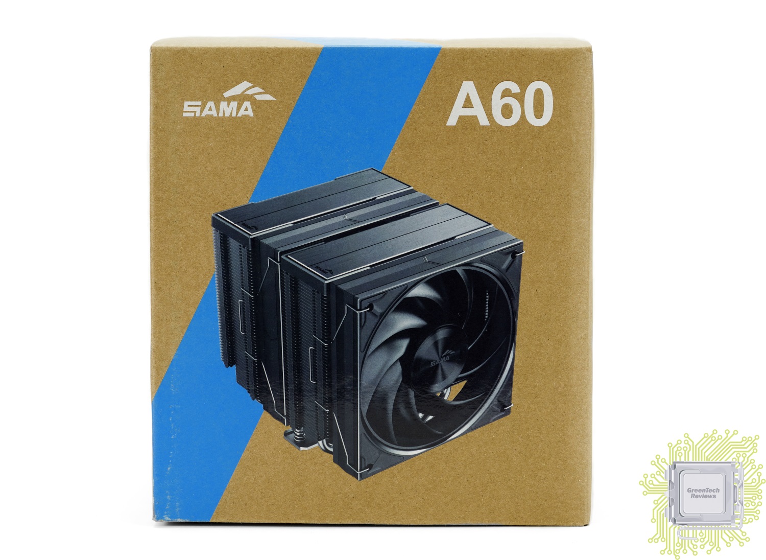 Процессорные кулера SAMA A60 представлены в четырёх вариантах — герой этого материала A60B, аналог в белом цвете A60W, «классический» (алюминий без дополнительной покраски) A60E и тот же классический, но с ARGB подсветкой — A60L. Конструкция же у них едина — это U-образный башенный кулер формата 120 мм, оборудованный двумя соответствующими вентиляторами. Производитель заявляет возможность отвода 265 Вт тепла, а также низкий уровень шума при меньших нагрузках. Интересных технических моментов у этого кулера немало, поэтому пора переходить к делу.