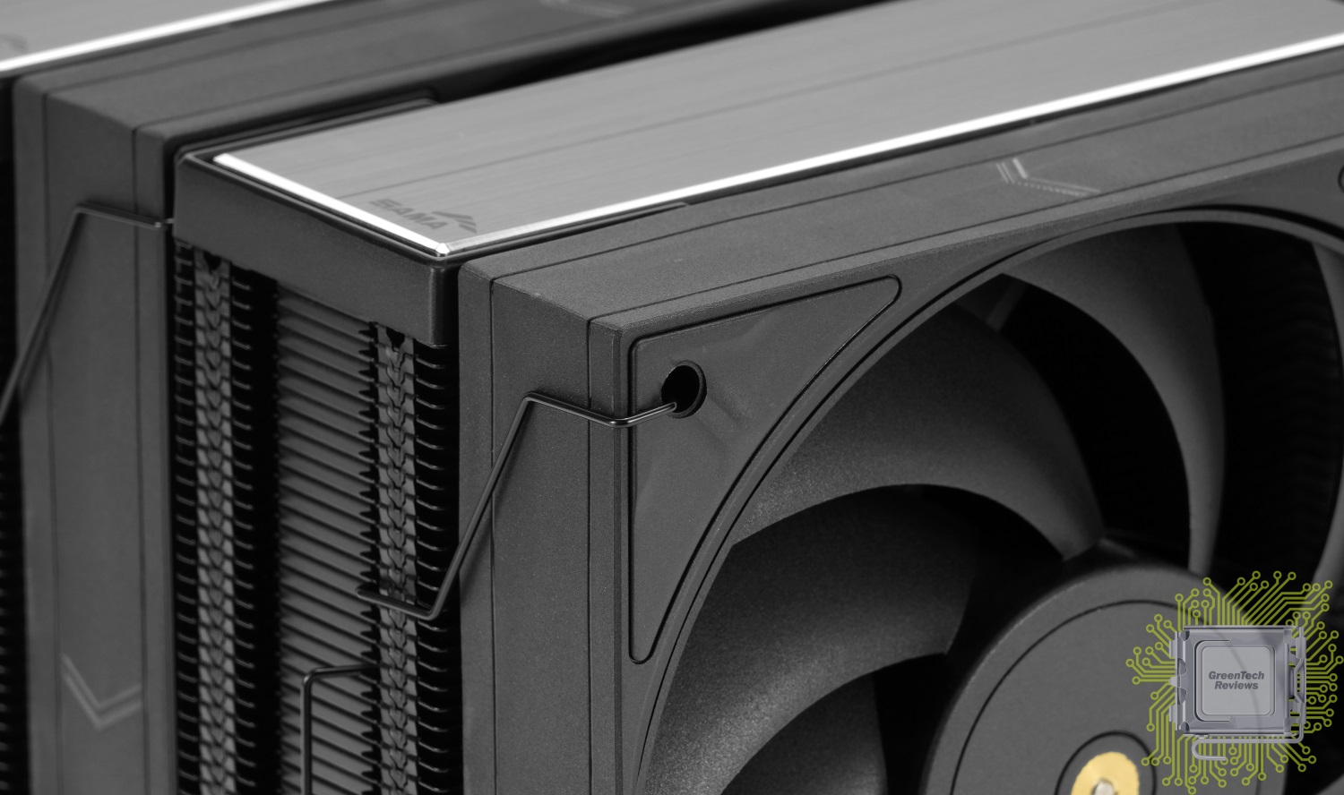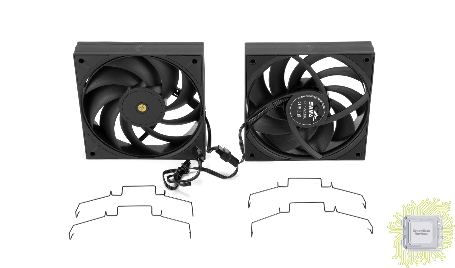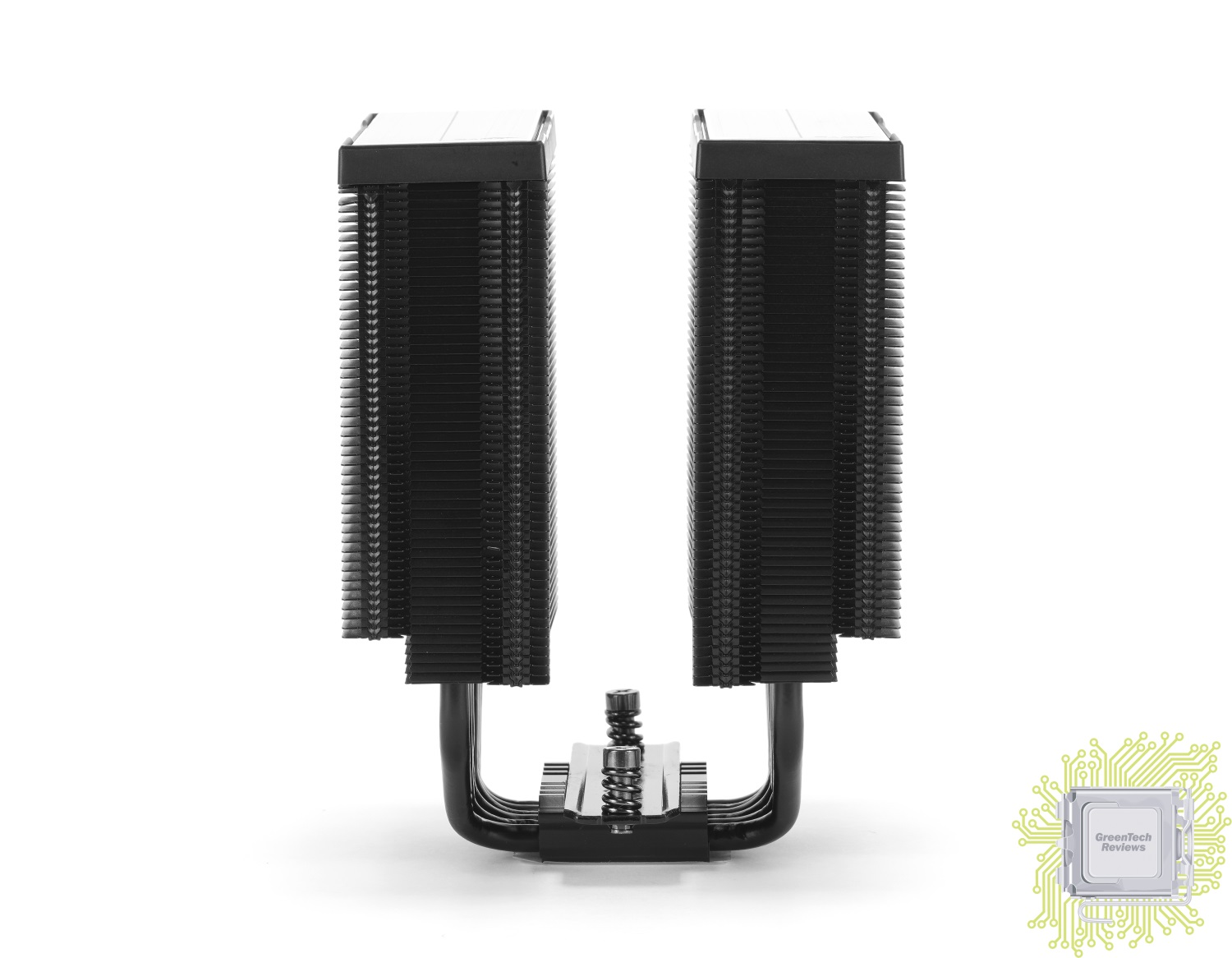 Конструкция кулера, в целом, стандартная с учётом некоторых потребностей при сборке систем. Вентиляторы фиксируются при помощи двух скоб каждый.