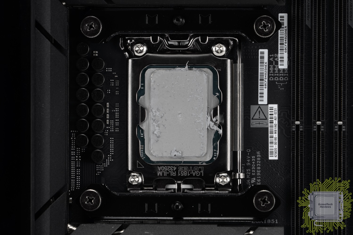 Раз зашёл разговор об основании, то и продолжим его. Таким образом выглядит отпечаток термоинтерфейса от процессора Intel в исполнении LGA 1851.