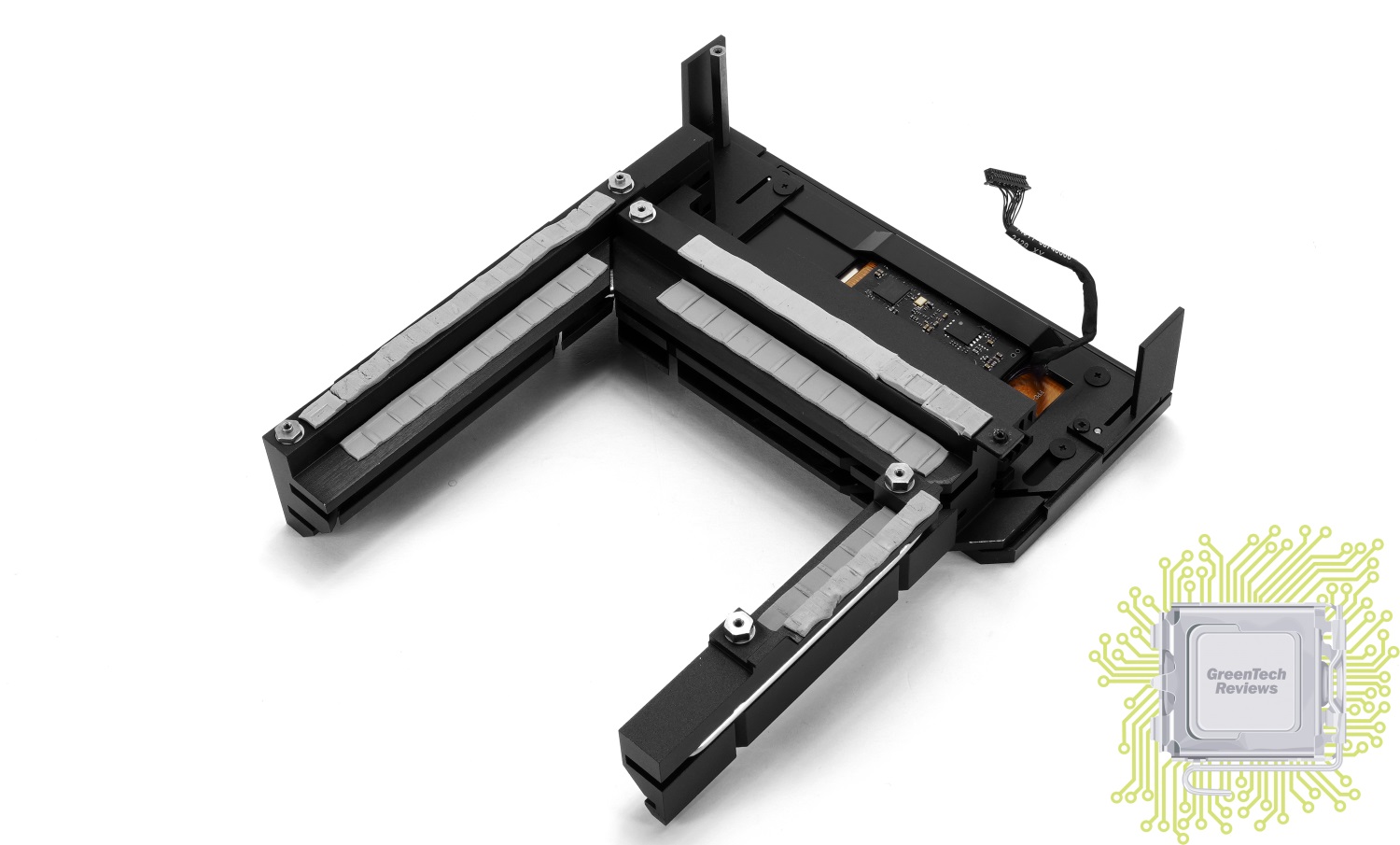 И во всех этих случаях охлаждение SSD реализовано с обеих их сторон. Система креплений SSD не требует дополнительных винтов. Разве что единый для трёх SSD радиатор прикручивается к материнской плате именно винтами.