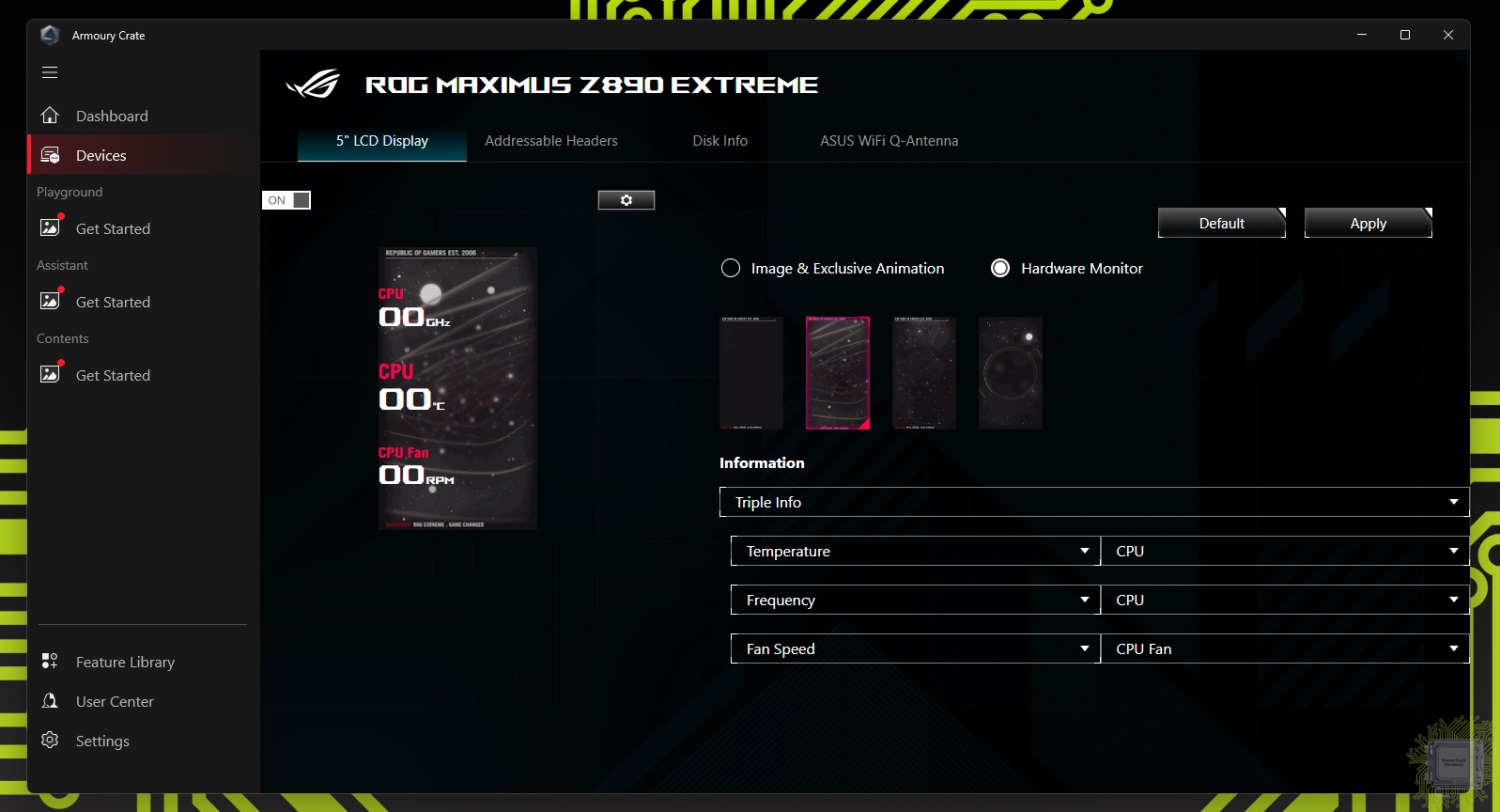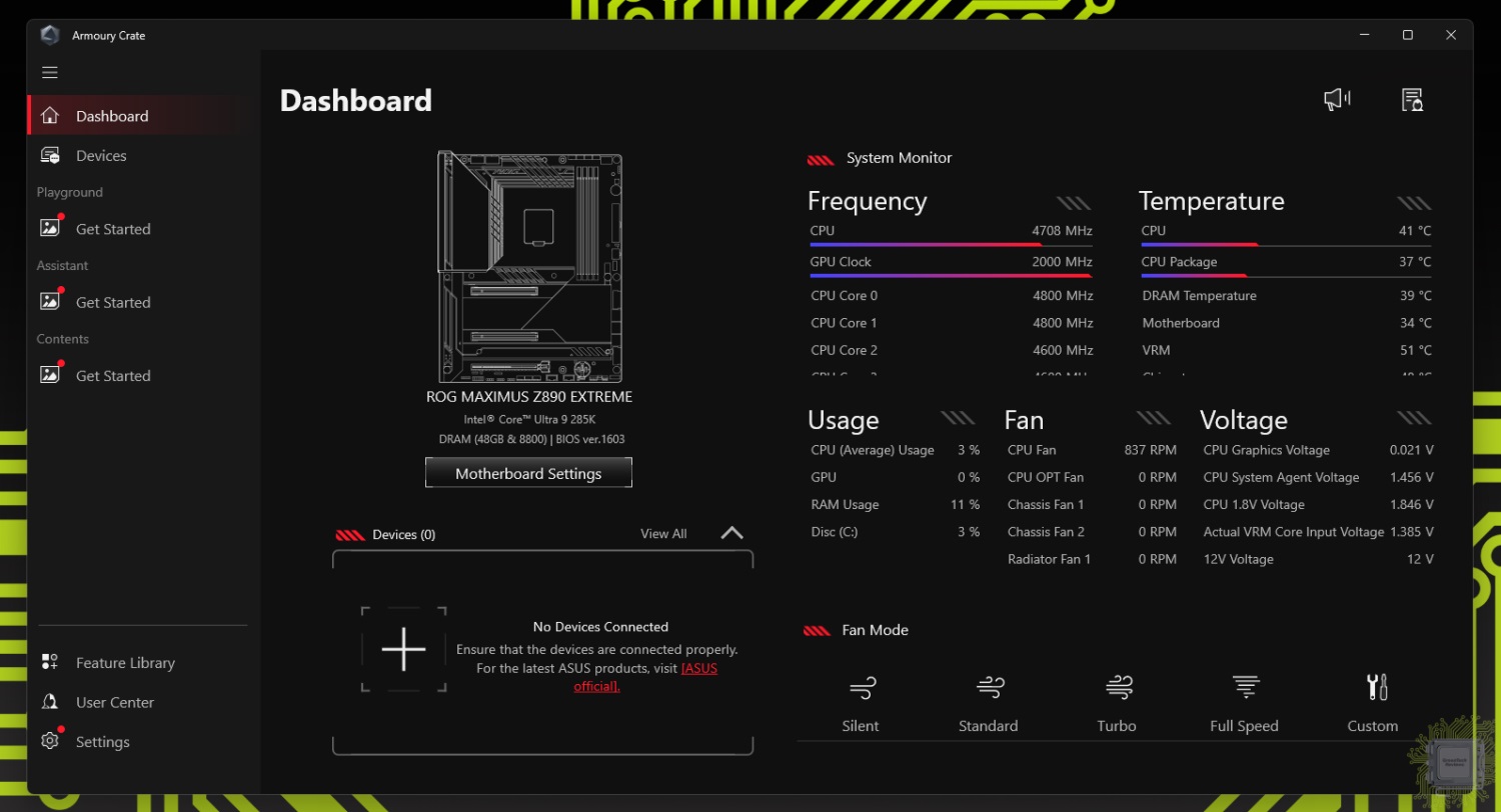 Для управления системой и мониторинга её параметров производитель комплектует плату фирменным программным обеспечением — Armoury Crate.