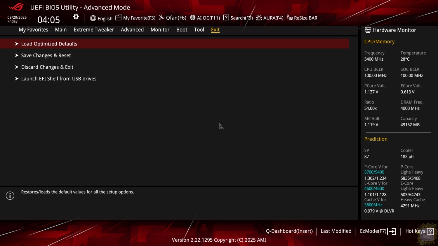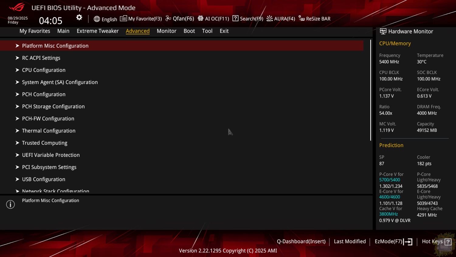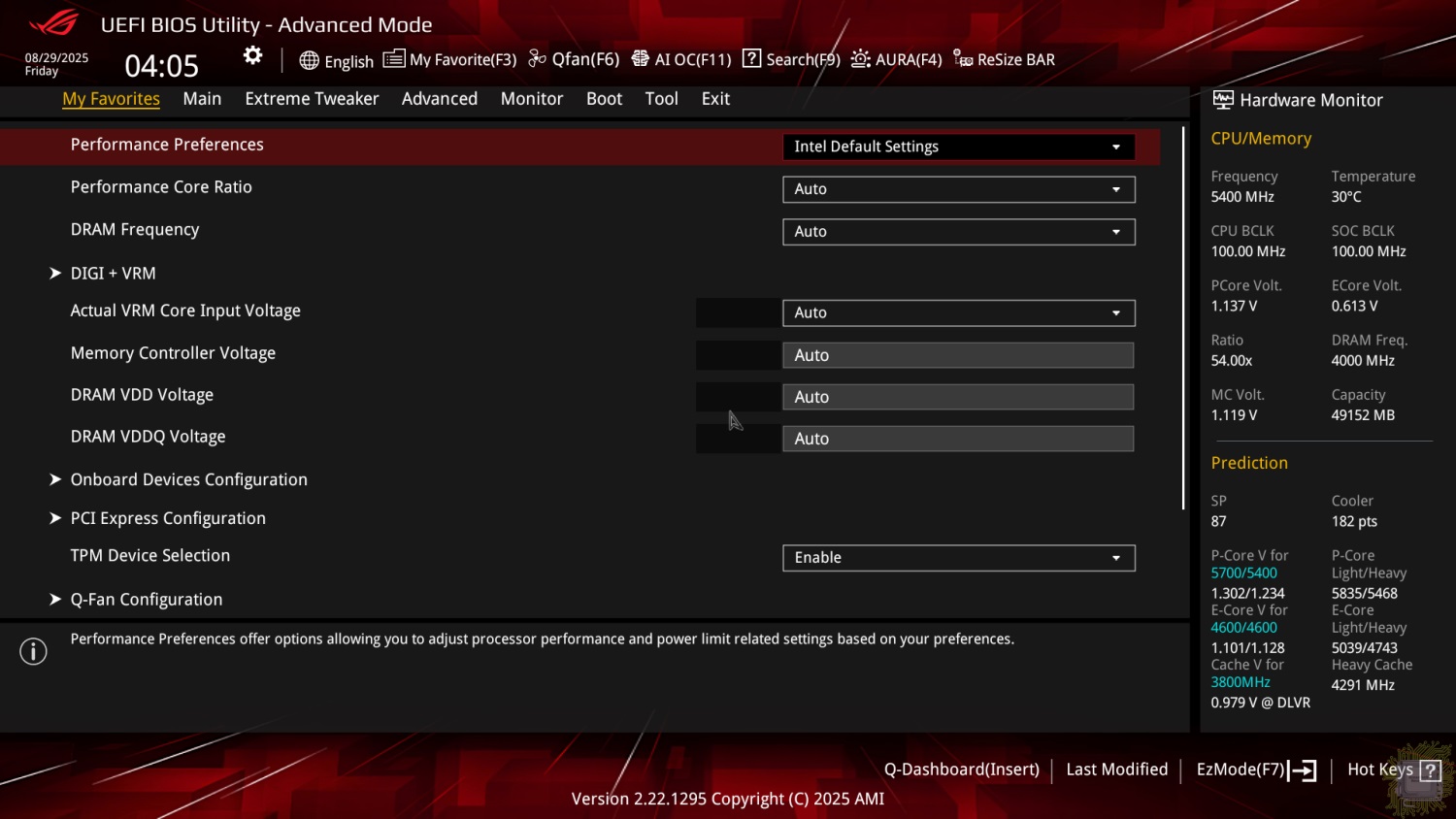 Упрощённый режим (EZ Mode) встречает нас экраном, на котором показана основная информация о подключённых устройствах — память, SATA-накопители, вентиляторы, процессор, а также температура и напряжение процессора, скорости вращения вентиляторов и режим работы системы.