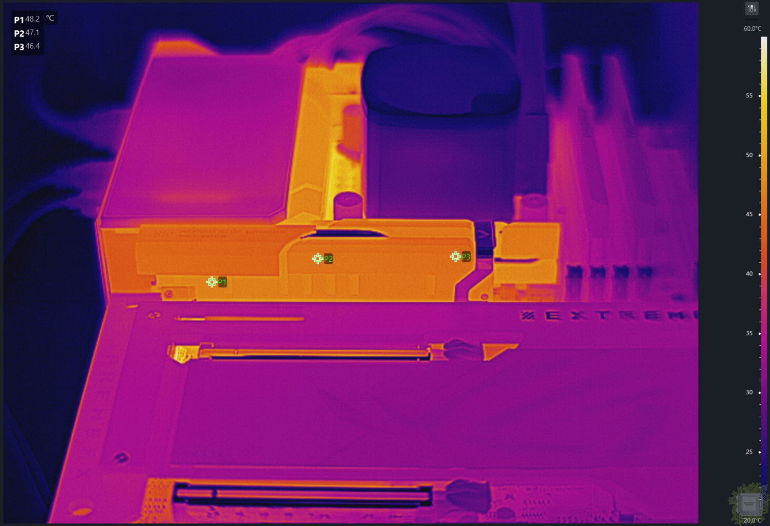 Температура радиатора M.2 SSD (использовался Gen5 диск) составила около 46-47°С.