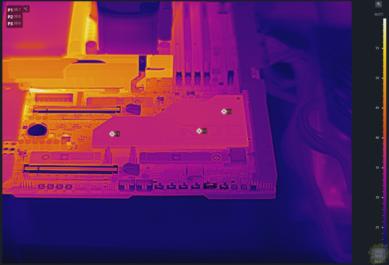 Температура радиатора чипсета составила около 39°С.