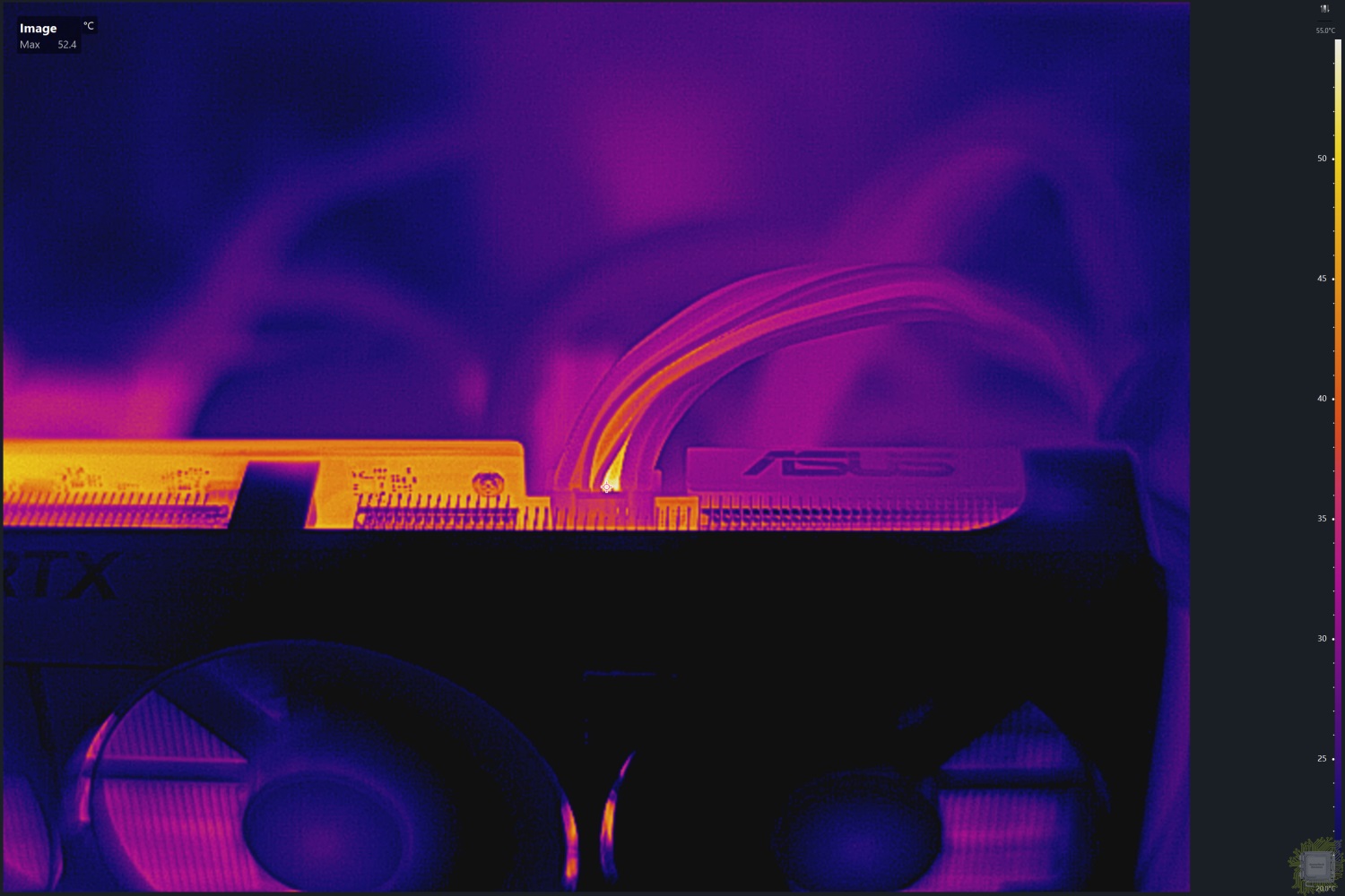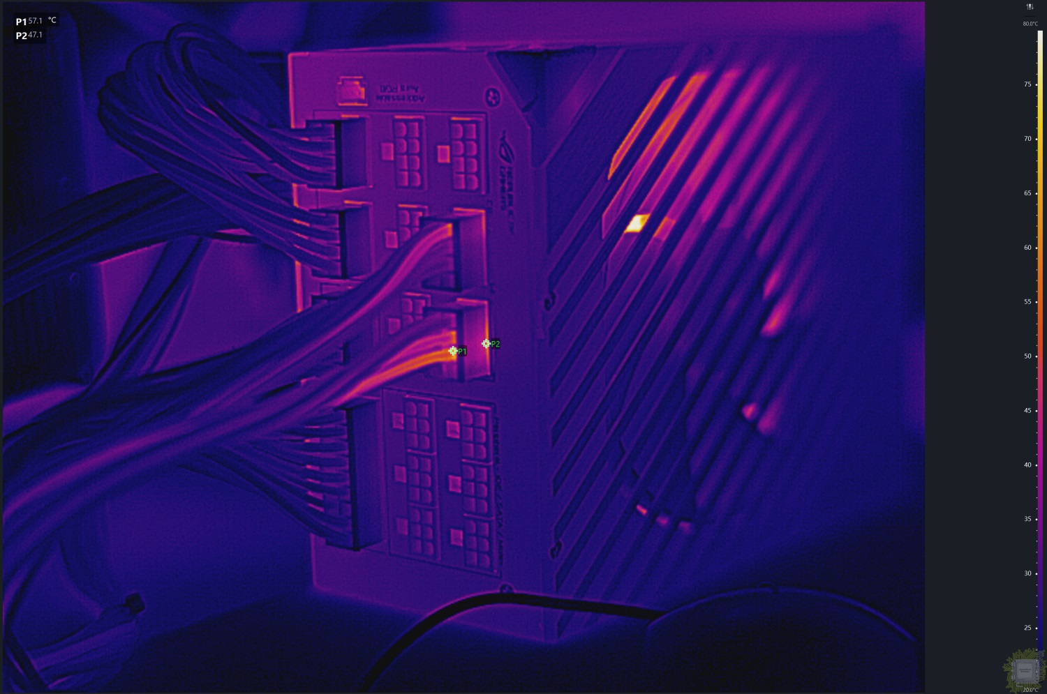 Для питания видеокарты использовался кабель из комплекта блока питания ASUS ROG Thor II 1200W. К его температуре питания с этой стороны никаких вопросов.
