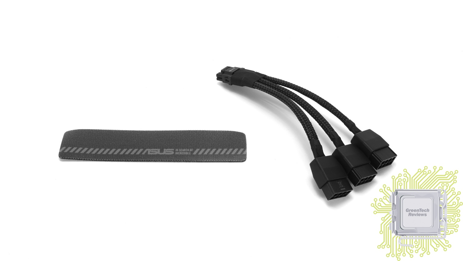 Кроме бумажной составляющей в комплекте поставки присутствует важный аксессуар — переходник питания с трёх 8-контактных классических кабелей на один 16-контактный. Помимо этого в коробке можно найти стяжку-липучку.