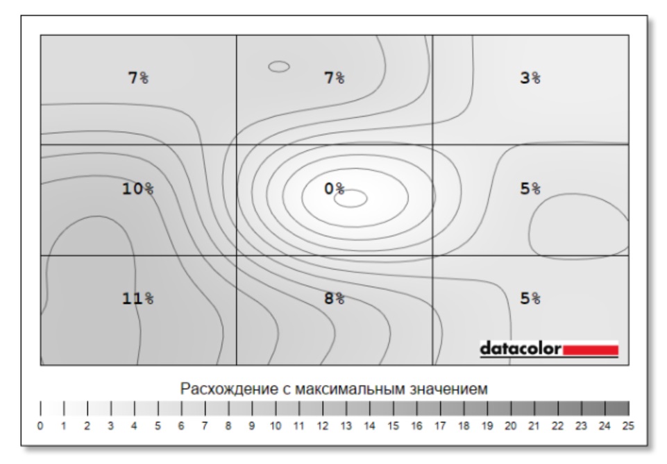 Максимальное отклонение яркости зафиксировано на отметке 11%, что можно назвать хорошим результатом.