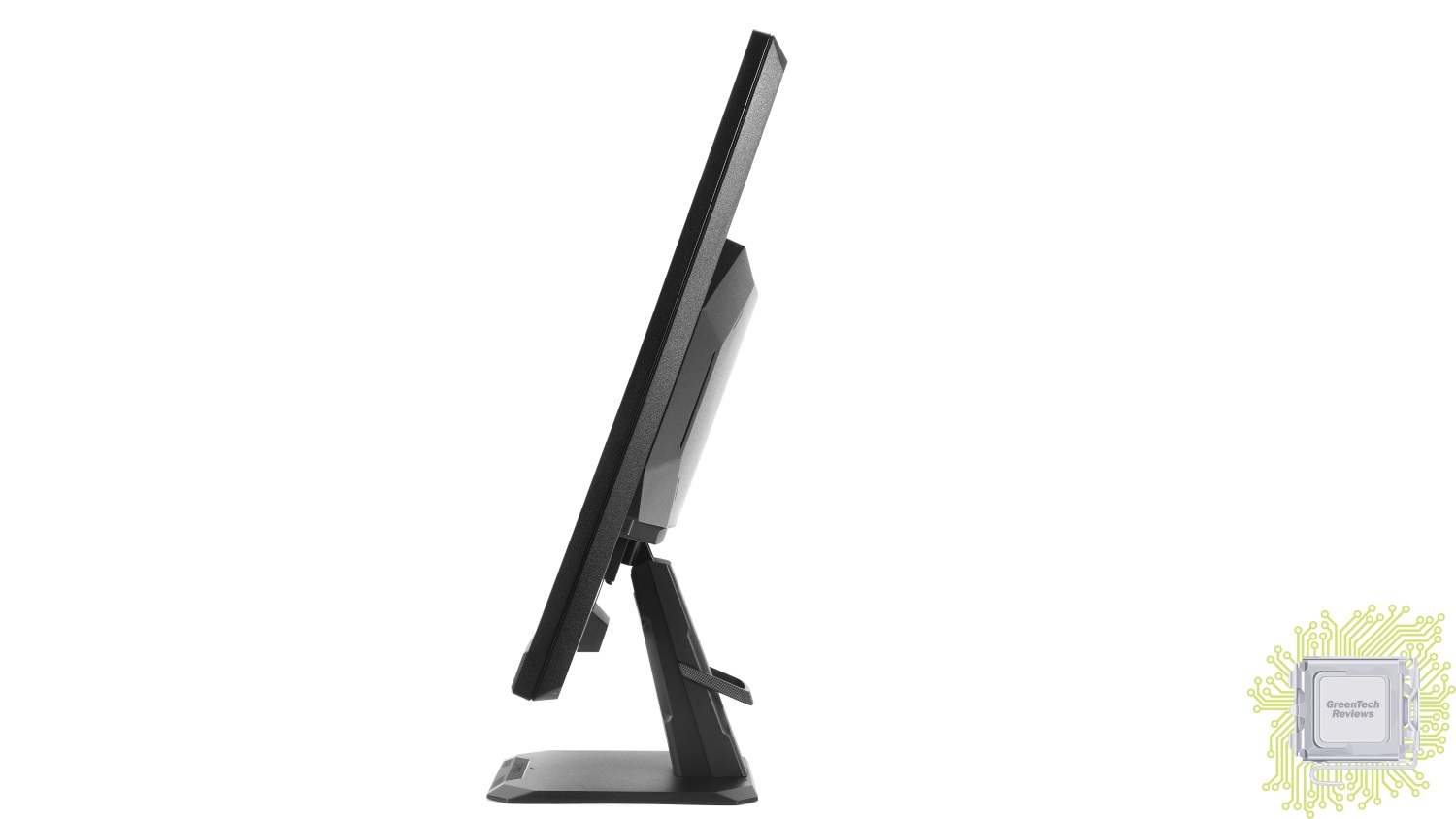 Подставка тоже лишена некоторого функционала, а именно — регулировки по высоте и повороту относительно основания. Регулировка экрана доступна по углу наклона дисплея относительно стола. Минимальный угол составляет минус 5°, что выглядит следующим образом: