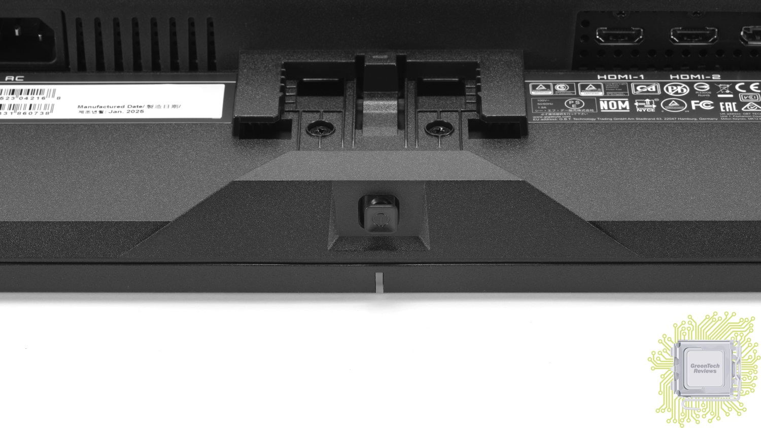 Задняя панель не выделяется чем-то особенным. Выполнена она из пластика чёрного цвета, а внутри находится металлический каркас, к которому при помощи соответствующих отверстий крепится VESA крепление (100х100 мм).