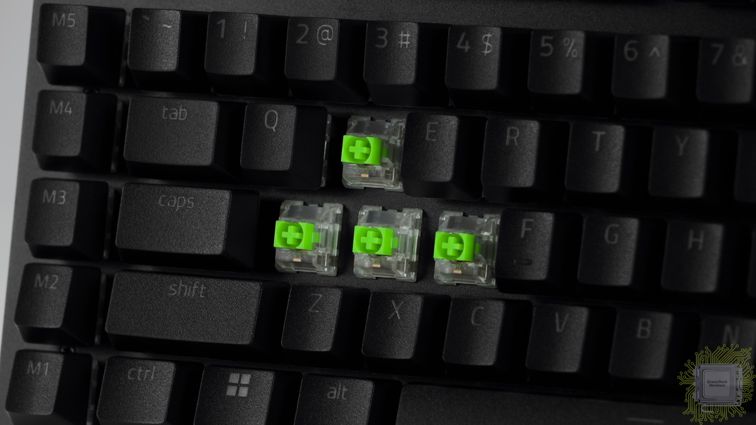 • Механические переключатели Razer™ Green 3–го поколения, щёлкающие и тактильные