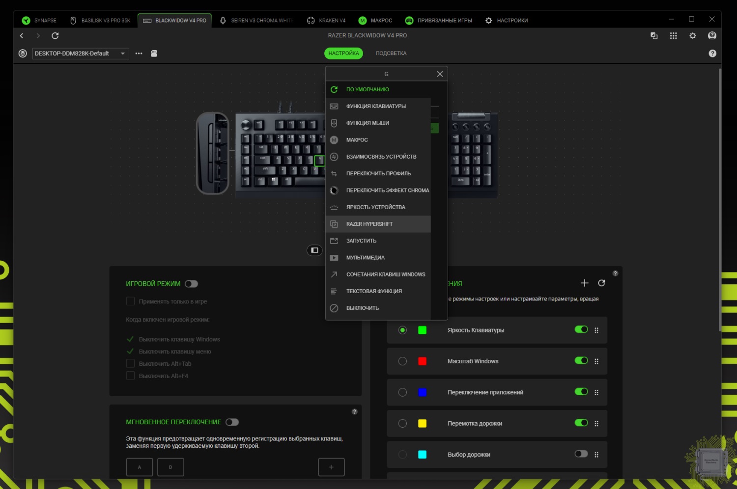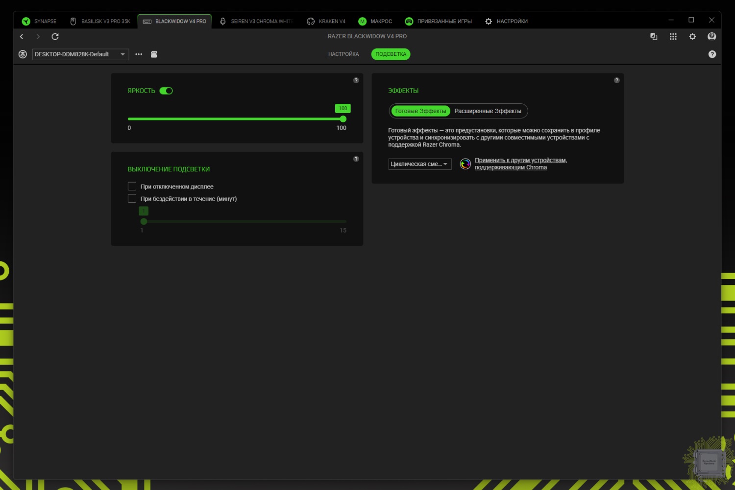 Простые режимы подсветки доступны сразу из приложения Synapse.