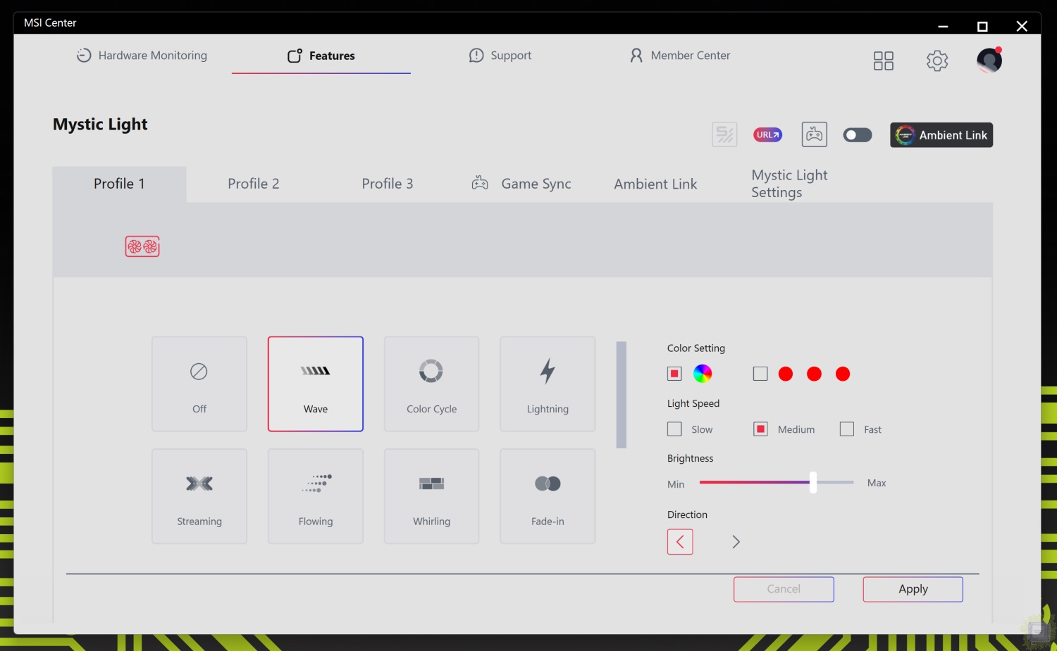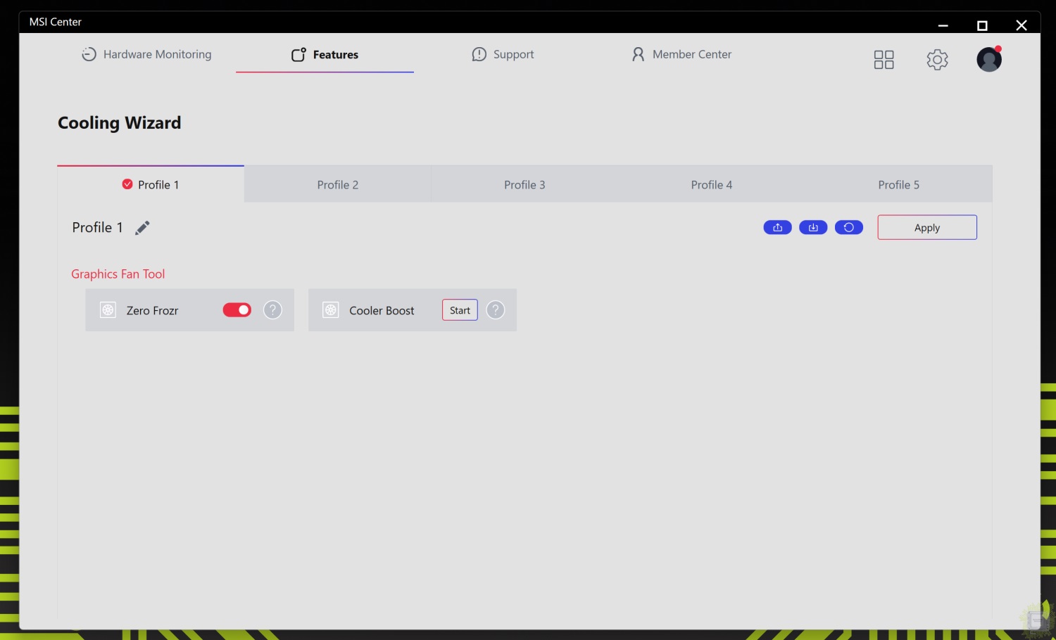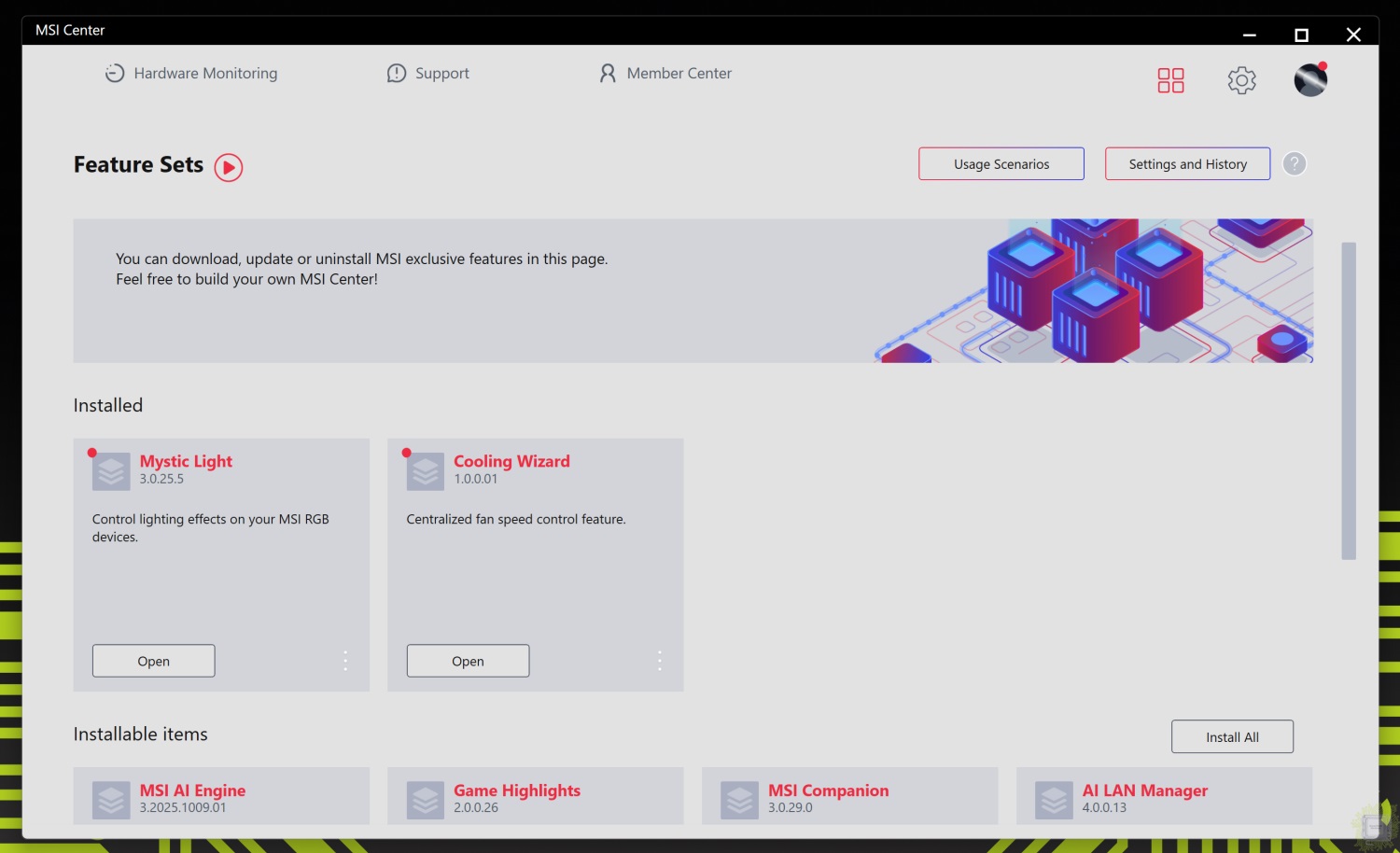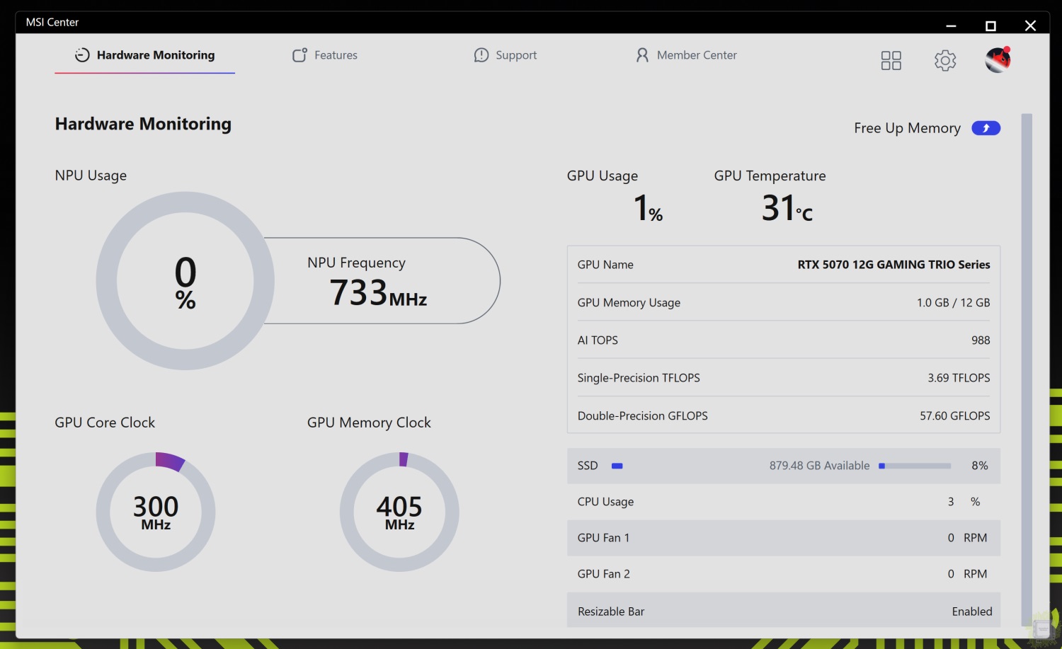 Производитель реализовал единое программное обеспечение для работы с видеокартой и иными совместимыми комплектующими производителя — MSI Center.