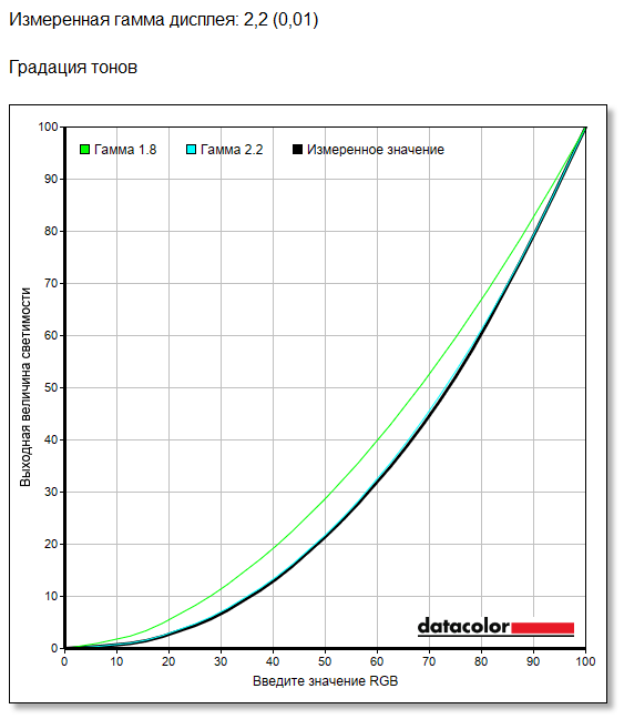 Значение гаммы при стандартных настройках составляет 2.2 с минимальным отклонением.