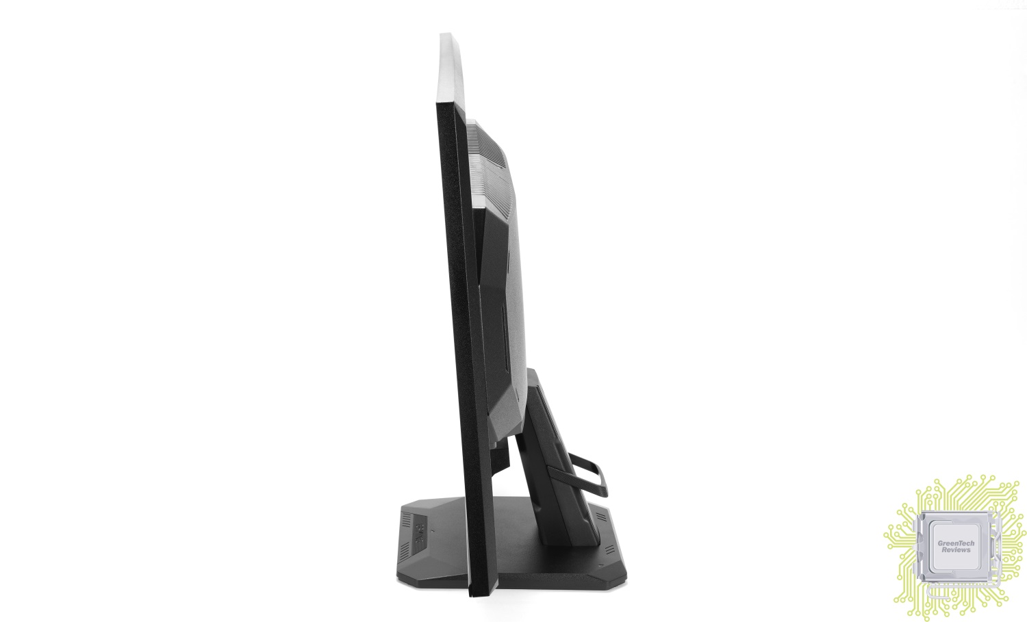 Перед нами находится компактный монитор со стандартным соотношением сторон 16:9, в основе которого лежит плоская SS (SuperSpeed) IPS панель с частотой обновления 200 Гц и разрешением 1920×1080 пикселей. Глубина цвета — 8 бит (настоящие, без FRC) Монитор относится к GS-серии, поэтому является бюджетной моделью, что означает отсутствие явных дизайнерских изысков в виде подсветки или чего-то подобного.