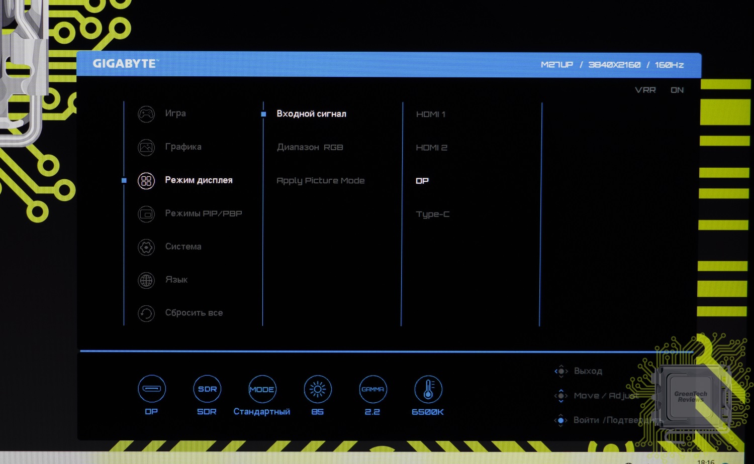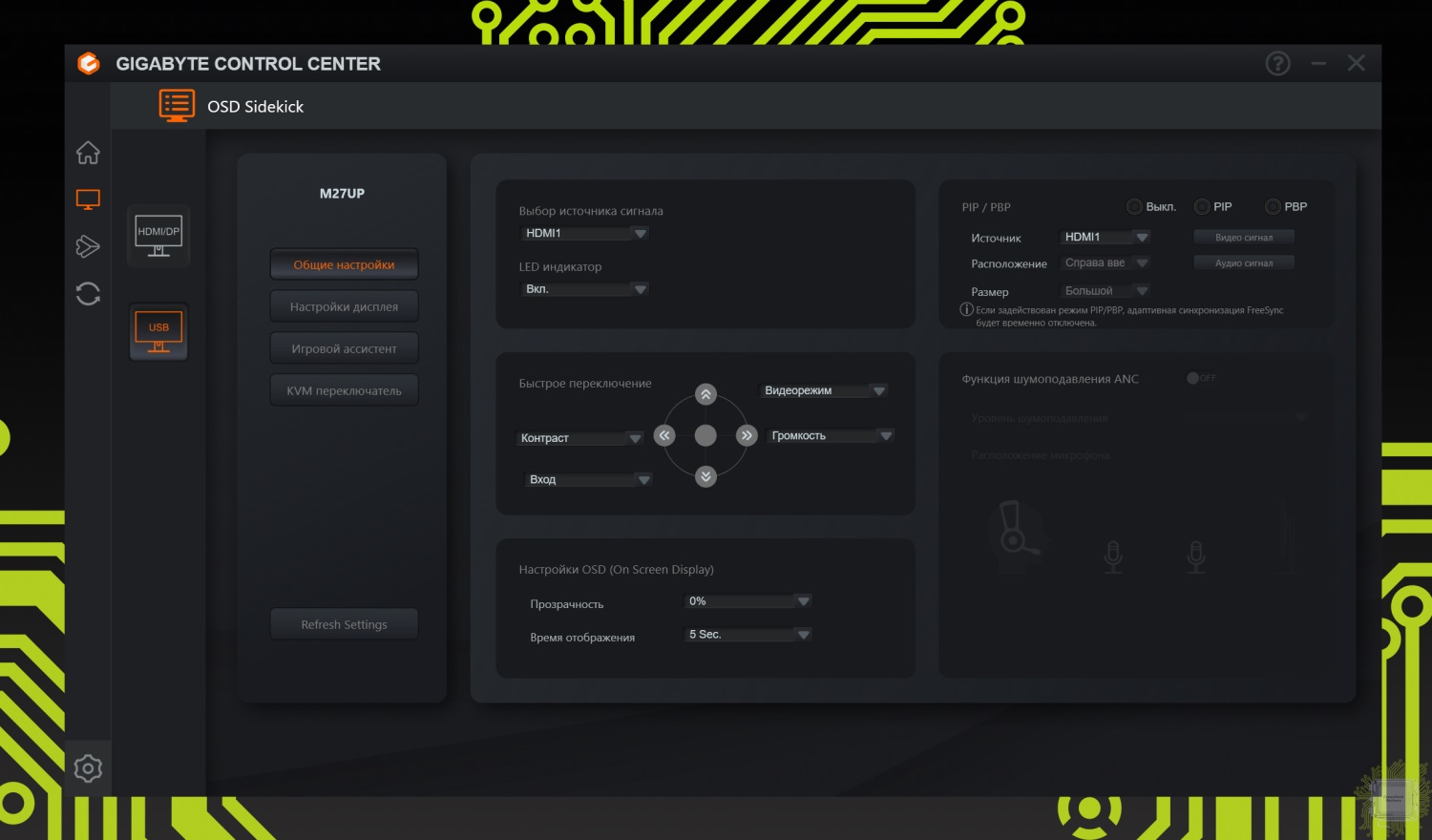 Монитор GIGABYTE M27UP не только в полной мере является игровым, но и совмещает в себе, можно сказать, два монитора сразу: 4K 27-дюймовый 160 Гц монитор и FullHD 24-дюймовый 320 Гц монитор. FullHD режим «уменьшает» диагональ до 24 дюймов, поэтому пиксели не будут казаться огромными — это не «натягивание» такого разрешения на 27 дюймов, а сокращение видимой области. Каких-либо значительных недостатков у M27UP не выявлено — он характерен отличным качеством изображения и всего, что с этим связано, включая точность цветопередачи. 4K разрешение при диагонали 27 дюймов всё ещё может казаться избыточным, но для игр это только достоинство — чёткость картинки будет на высоте (главное позаботиться о производительности системы), разве что интерфейс может быть несколько мелким. А главный недостаток в Windows 11 уже исправлен — масштабирование интерфейса работает корректно. Другой вопрос — этот же момент в программном обеспечении. Но разработчики стараются всё сделать как надо, так как мониторов с таким соотношением диагонали и разрешения на рынке становится всё больше. По результатам тестирования можно смело заявлять — GIGABYTE M27UP является грамотным выбором в своей категории за адекватные деньги.