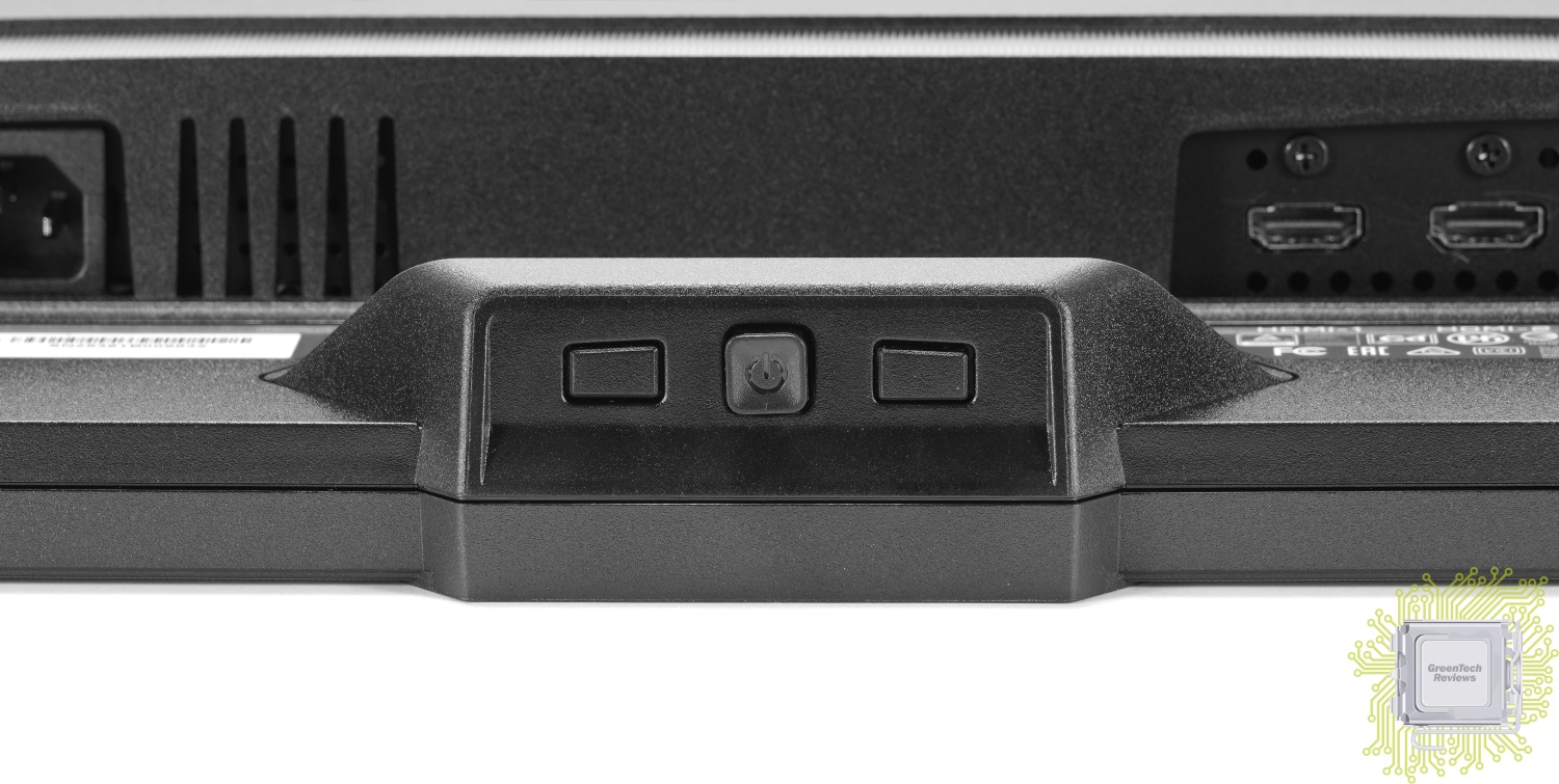Управление параметрами монитора выполняется при помощи джойстика-кнопки и двух кнопок по центру снизу. Параметрами монитора можно управлять и при помощи фирменного программного обеспечения, если монитор подключён к ПК ещё и USB кабелем.