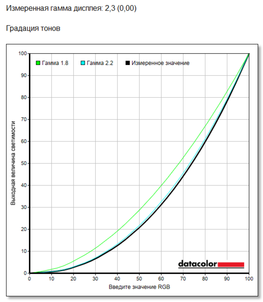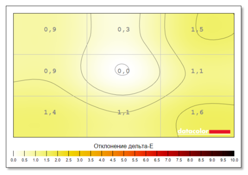 К равномерности цвета тоже никаких претензий — результаты очень хорошие (требуется менее 3 для профессиональных мониторов, а у нас игровой).