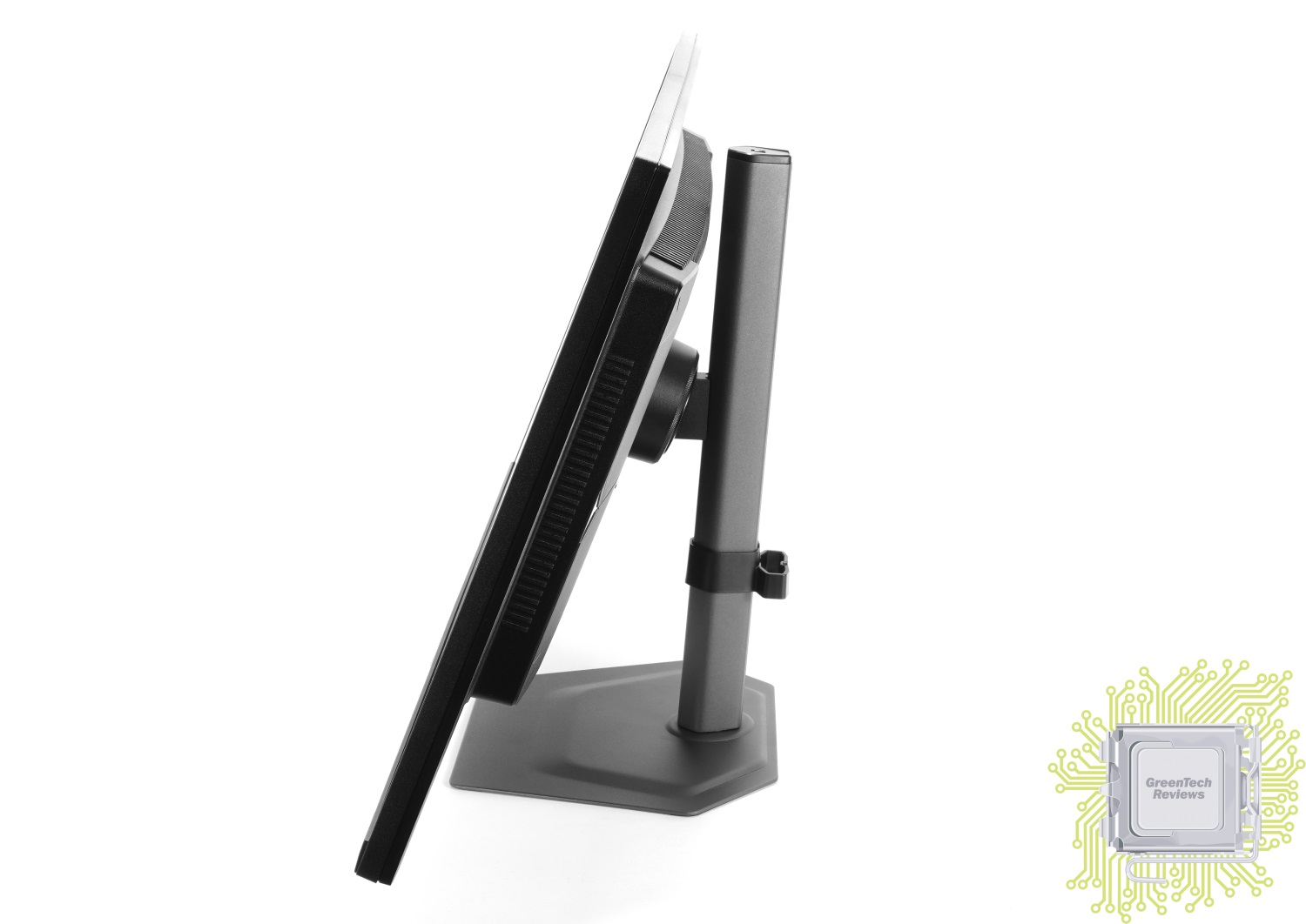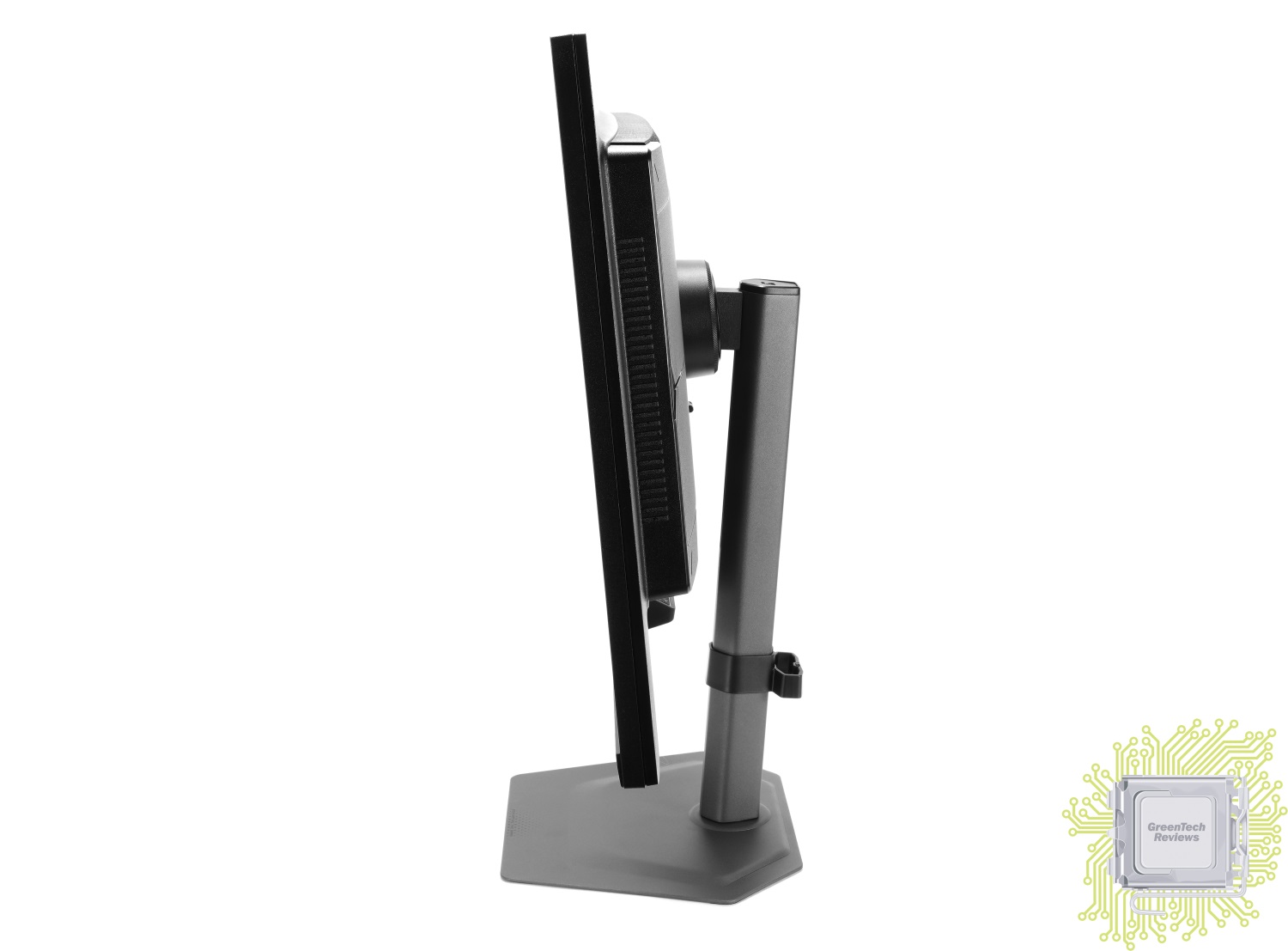 Регулировка экрана доступна по углу наклона и по высоте. Минимальный угол составляет минус 5°, что при максимальной высоте выглядит следующим образом:
