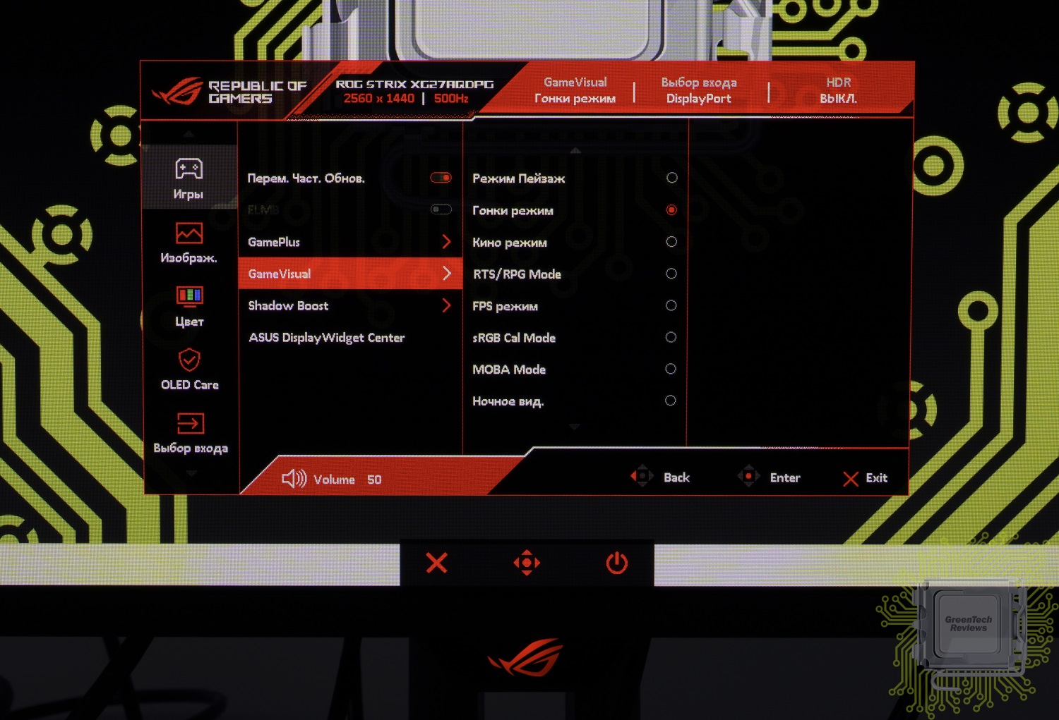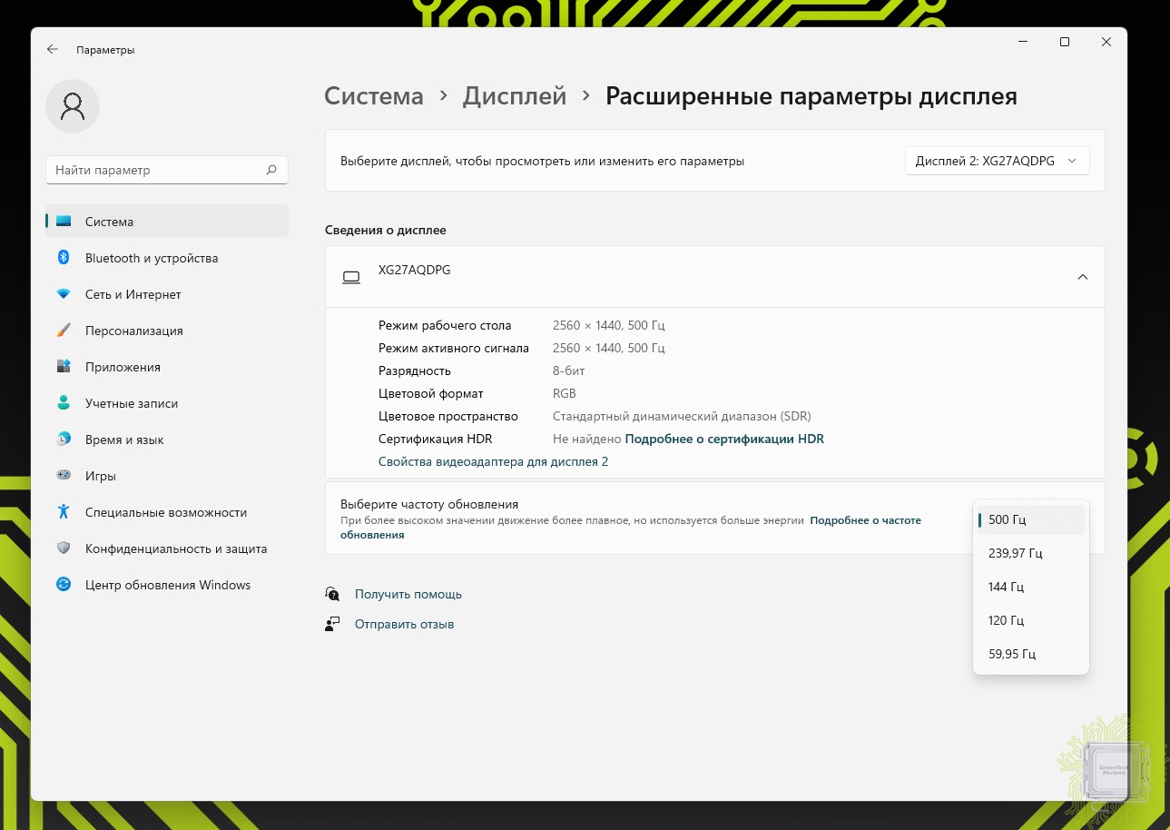 Монитор позволяет выбрать пять режимов частоты обновления — от 60 до 500 Гц.
