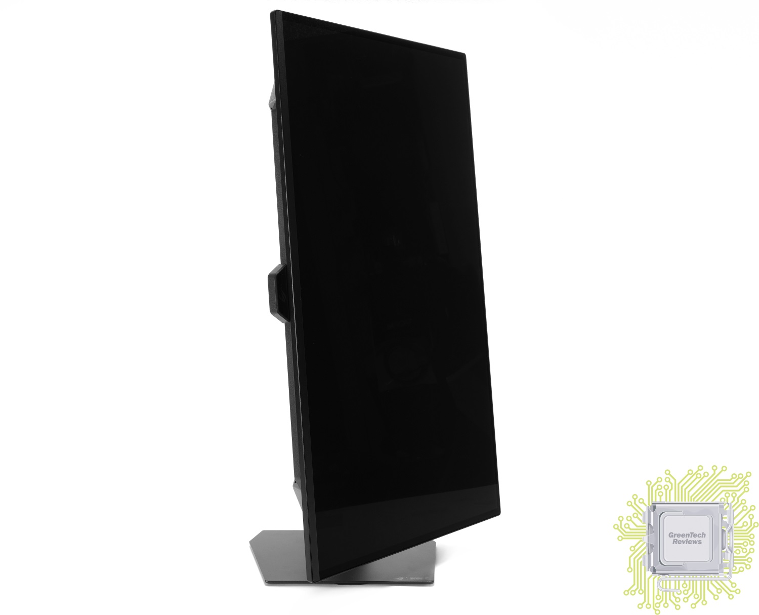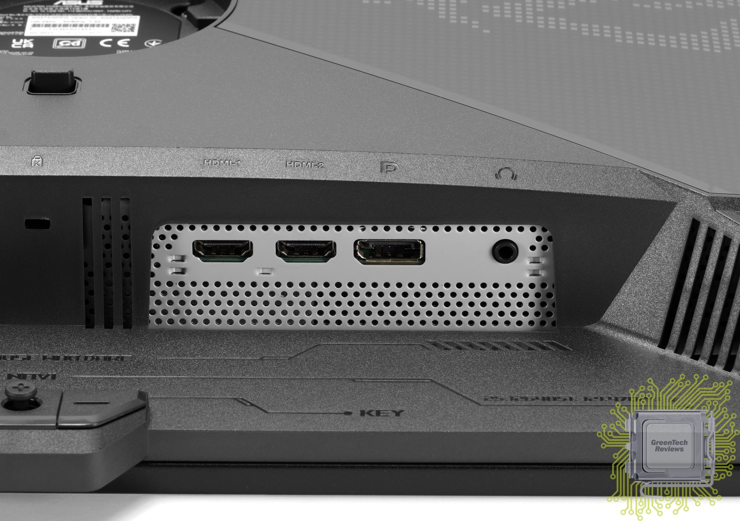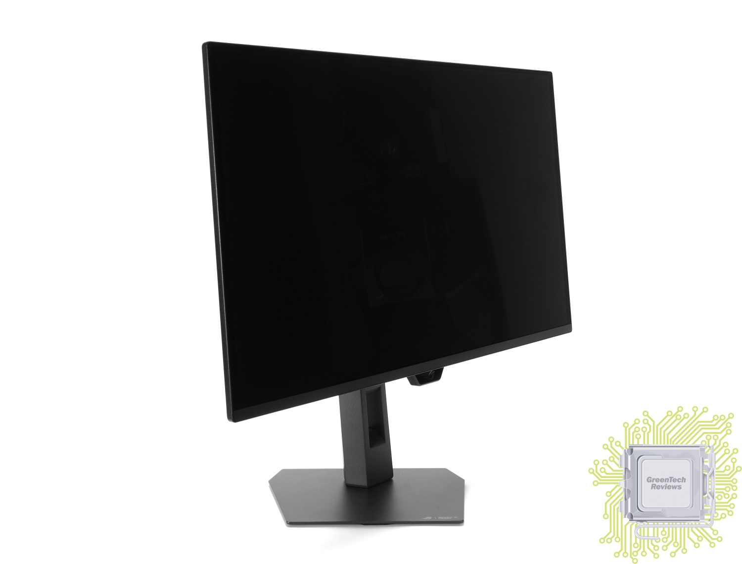 В отличие от старших моделей, подсветка у которых реализована в нескольких местах подставки (сзади, проекция), у данного монитора реализован только логотип бренда, который состоит из множества подсвечивающихся квадратиков.
