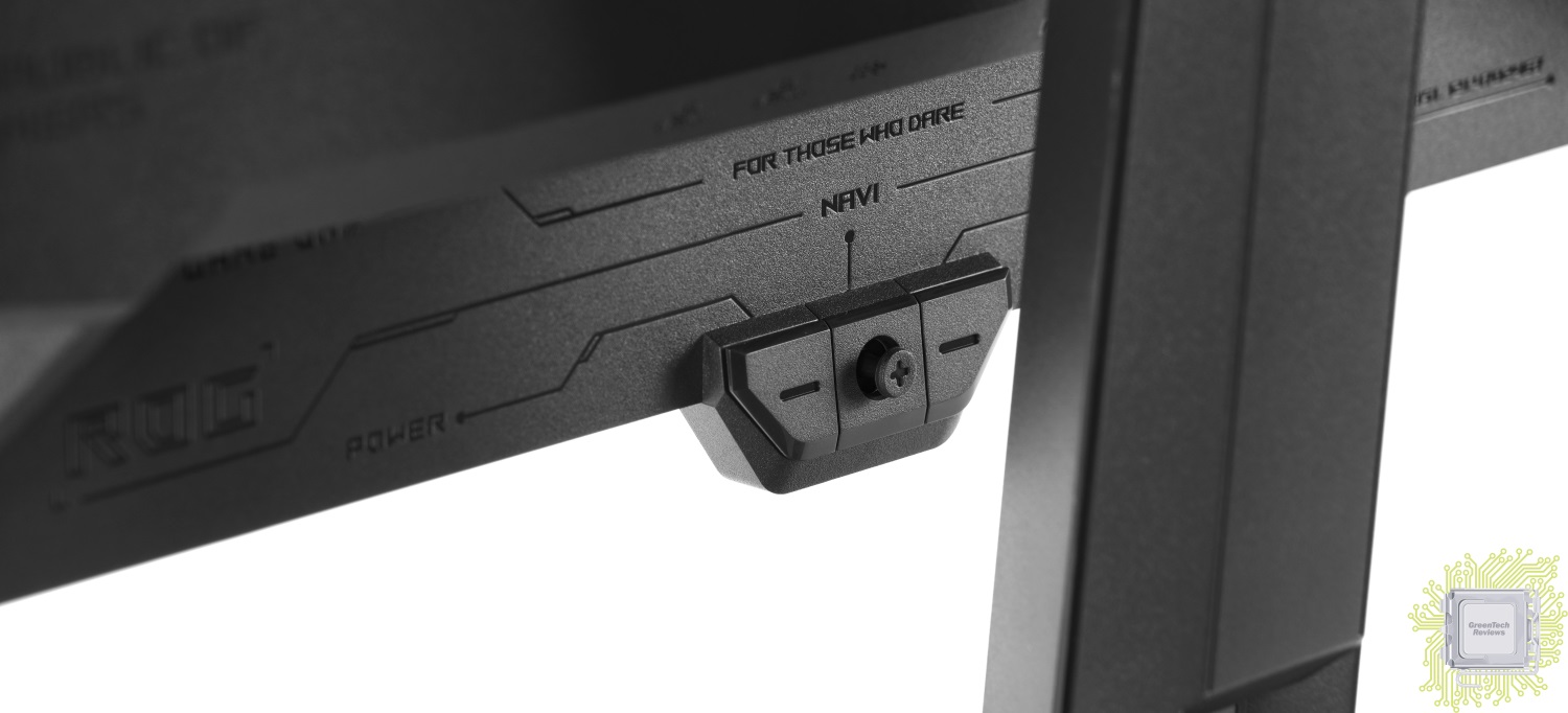 Управление параметрами монитора выполняется при помощи джойстика-кнопки и двух кнопок по центру снизу. Параметрами монитора можно управлять и при помощи фирменного программного обеспечения, если монитор подключён к ПК ещё и USB кабелем.