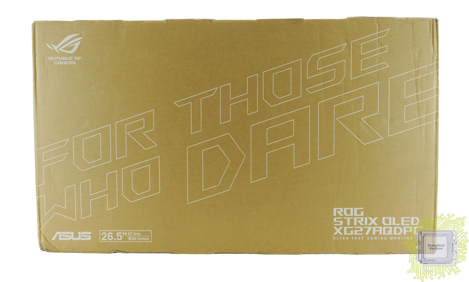 В отличие от старших моделей мониторов, в данном случае к нам в руки попадает классическая картонная коробка. Аналогично некоторым другим моделям таких мониторов серии ROG STRIX.