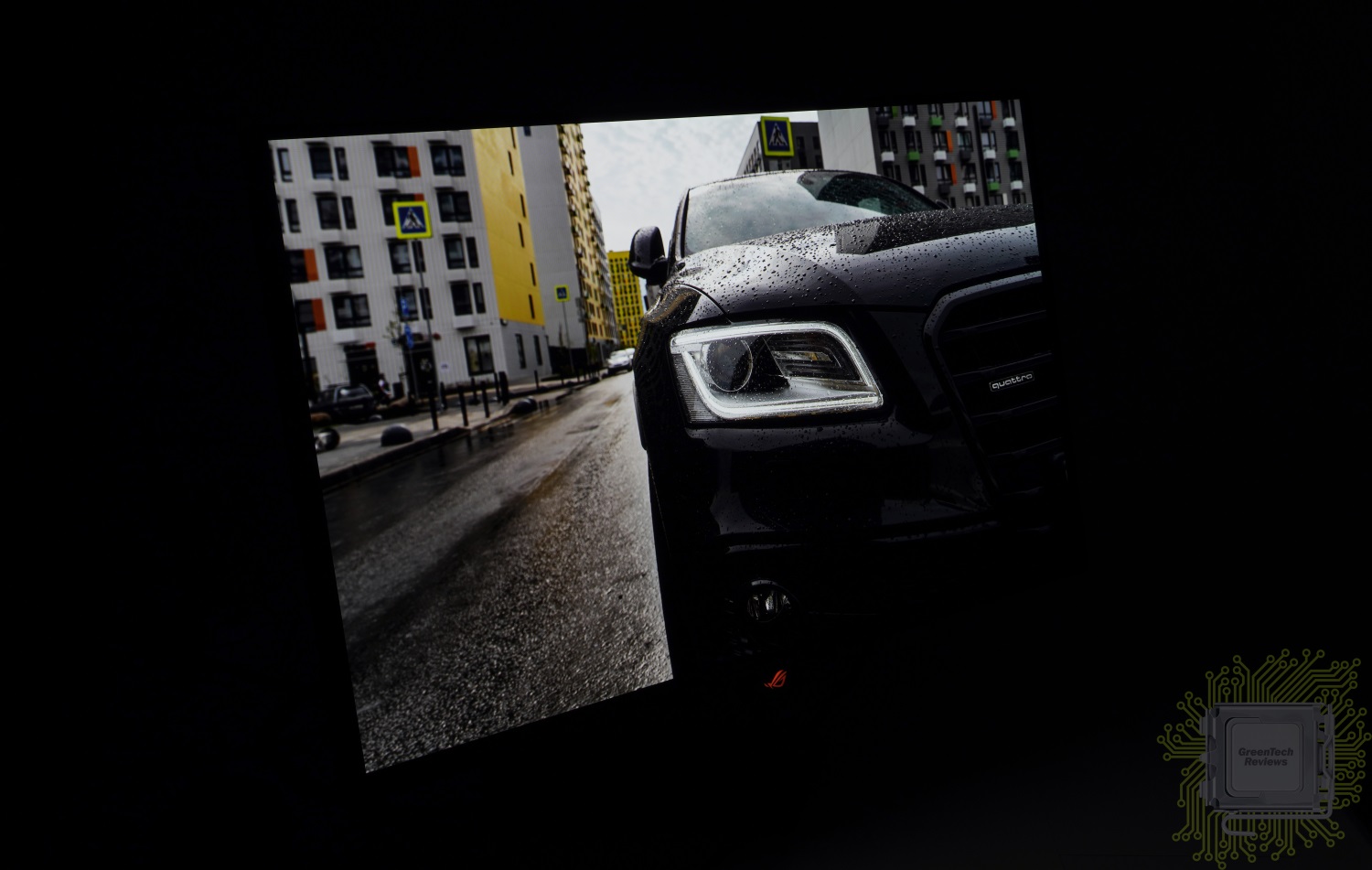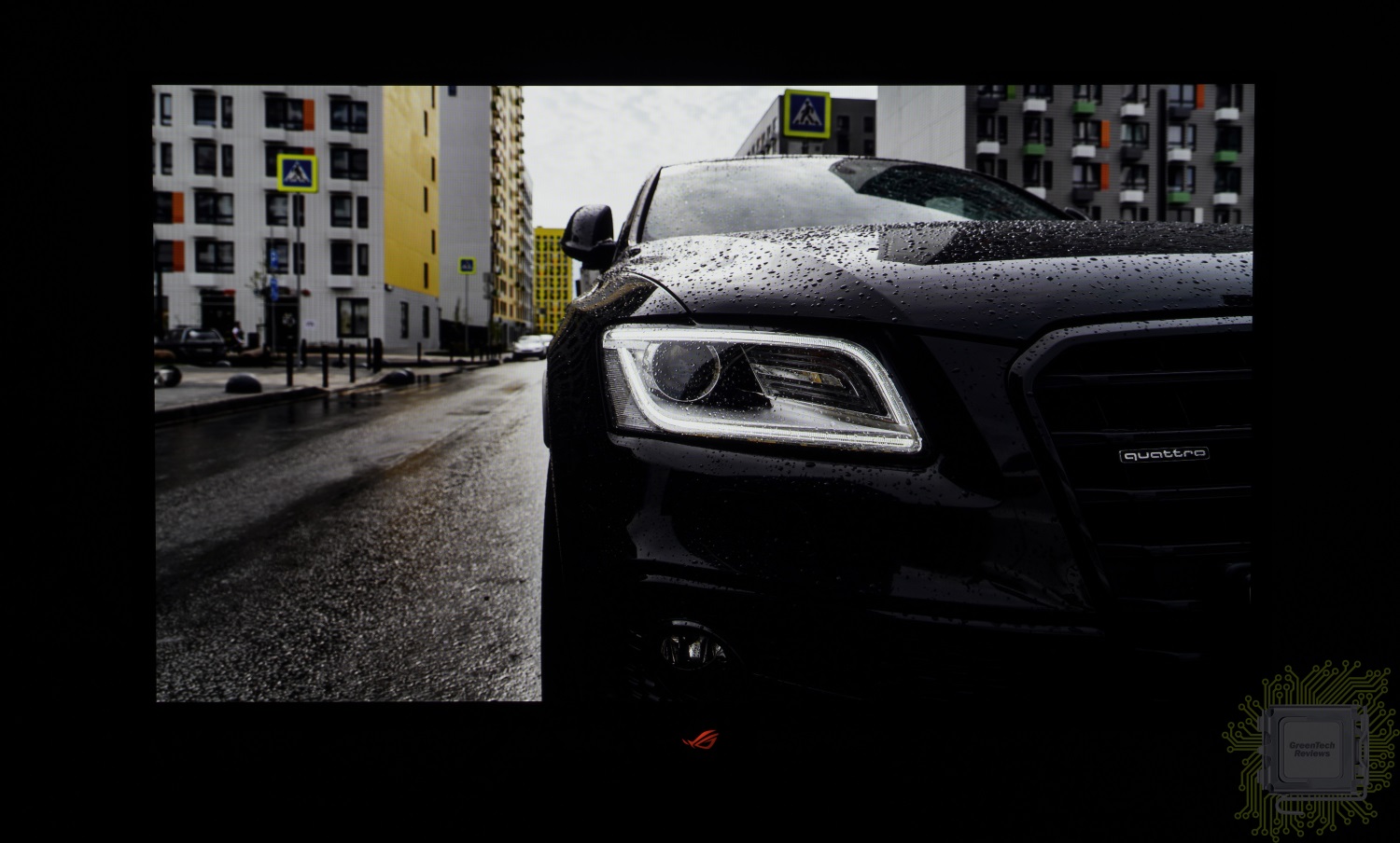 Взгляд сбоку был ограничен углом поворота панели (напомним — 45°). Монитор отлично отрабатывает как сочные в плане цвета сцены, так и тёмные. Некоторая разница в цвете видна по той причине, что сделать фото выше на OLED панели сложно — появляются некоторые искажения цвета.