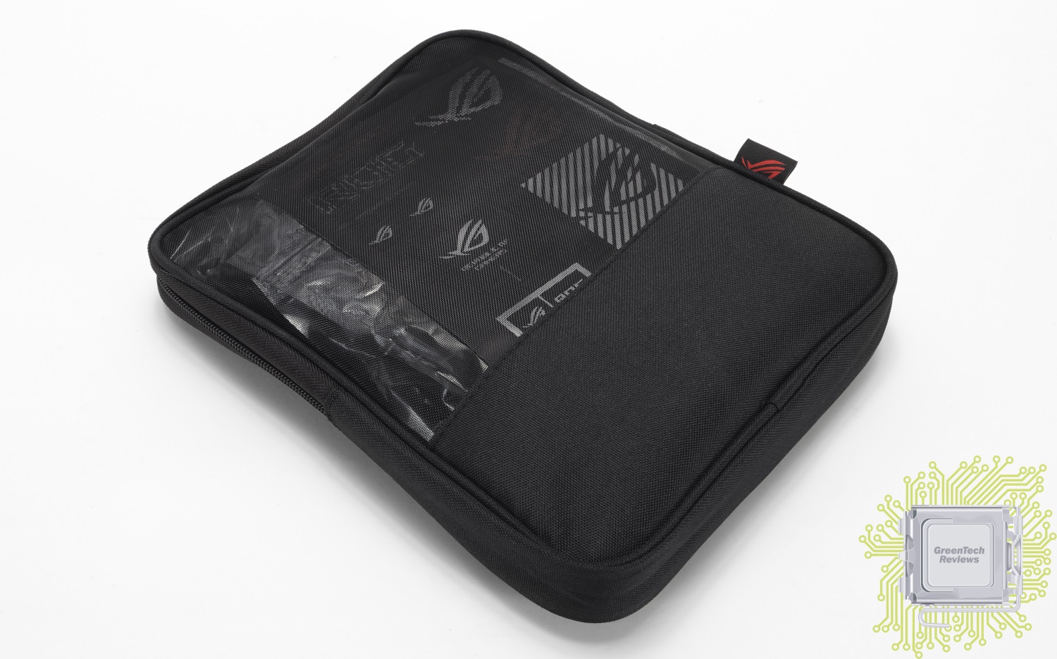 Часть комплекта поставки уложена в индивидуальные пакеты и находится в ложементе, а часть производитель положил в чёрную сумку с фирменным логотипом.