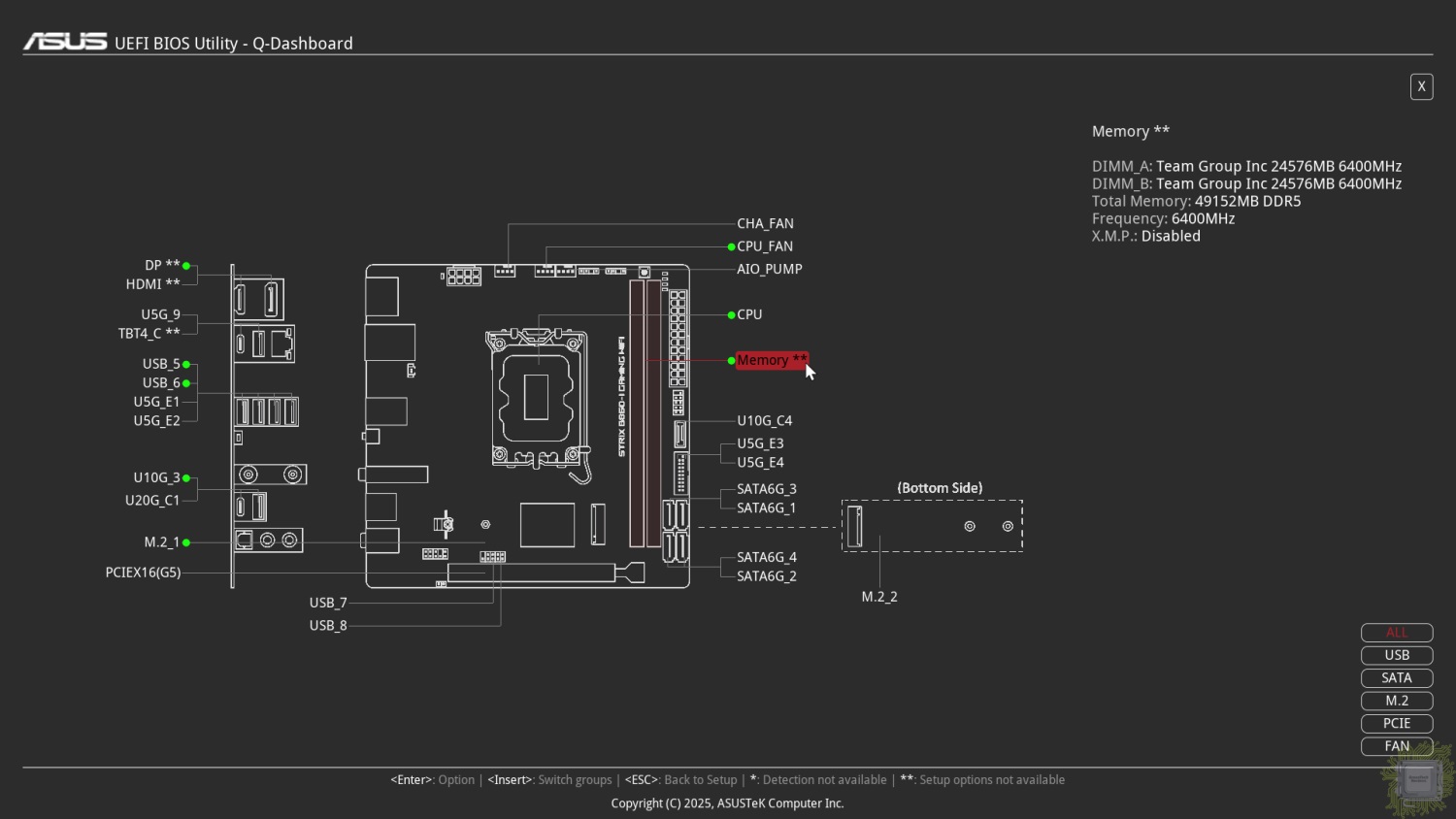 Одно из нововведений — демонстрация интерфейса в разрешении FullHD. Второе — интерактивная схема материнской платы с подключёнными устройствами.