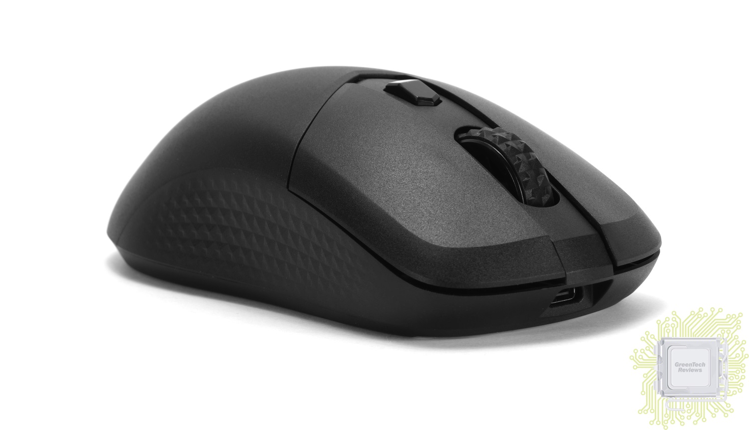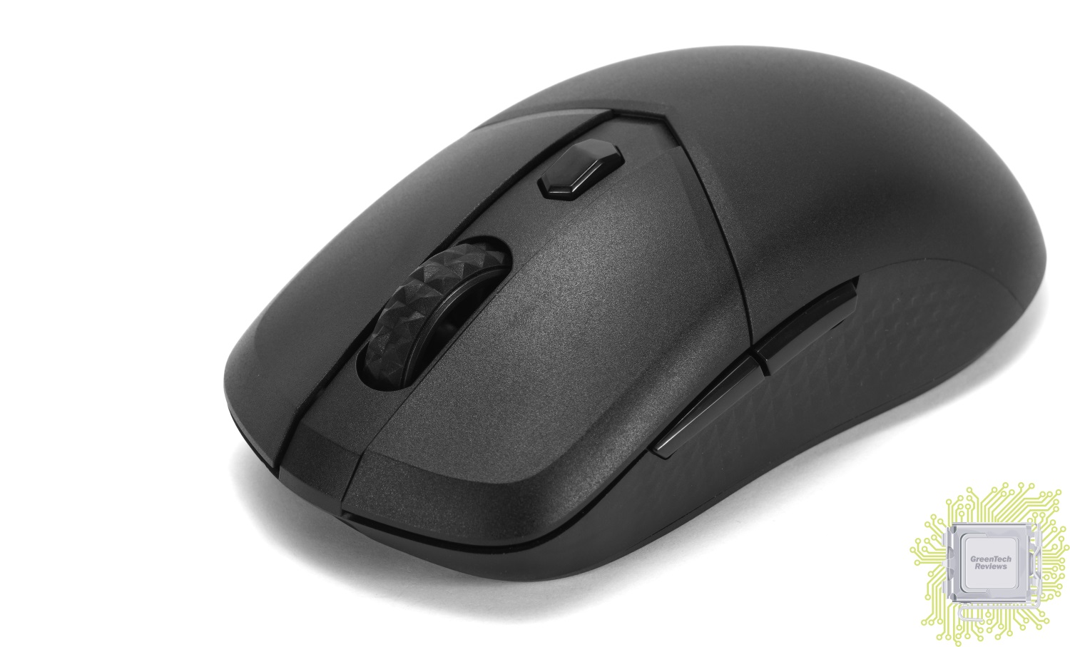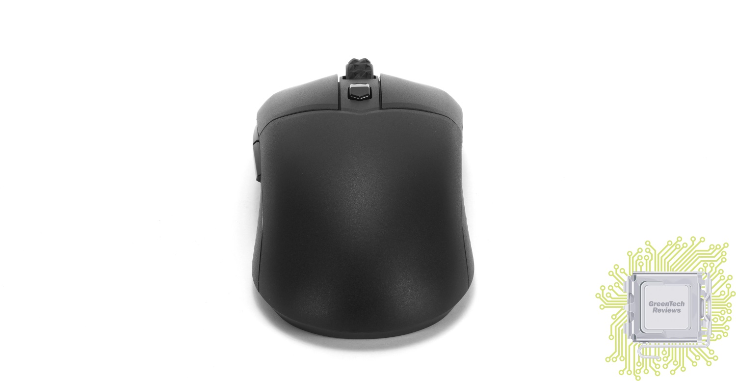Корпус мыши выполнен из матового пластика, а боковые кнопки характерны глянцевой поверхностью. Колёсико обладает резиновой рельефной накладкой, что делает его цепким. Возле него размещена кнопка, отвечающая за последовательное переключение между режимами работы (400 / 800 / 1600 / 2400 / 3200 / 4000 / 6400 / 8000 DPI). Производитель использует переключатели Kailh с ресурсом более 30 млн нажатий.