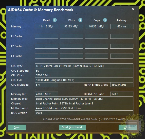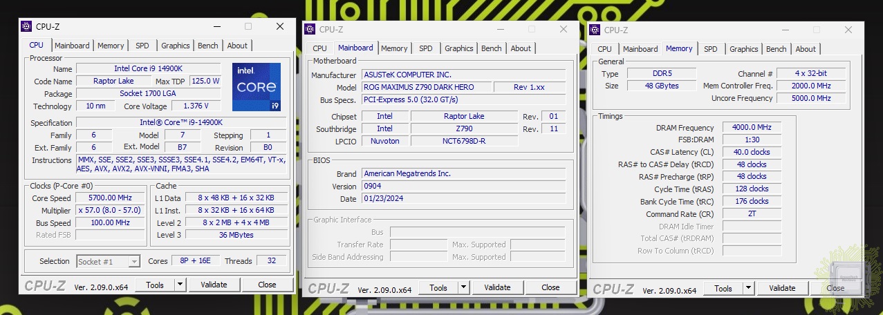 Для тестирования был взят процессор Core i9-14900K и память G.Skill Trident Z5 с XMP профилем 8000 МТ/с. Тестирование производительности — это тема отдельного материала, а сейчас проверим возможности платы в плане работы с памятью и рассмотрим эффективность системы охлаждения.
