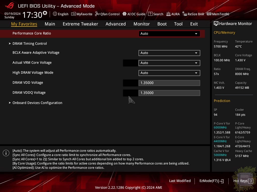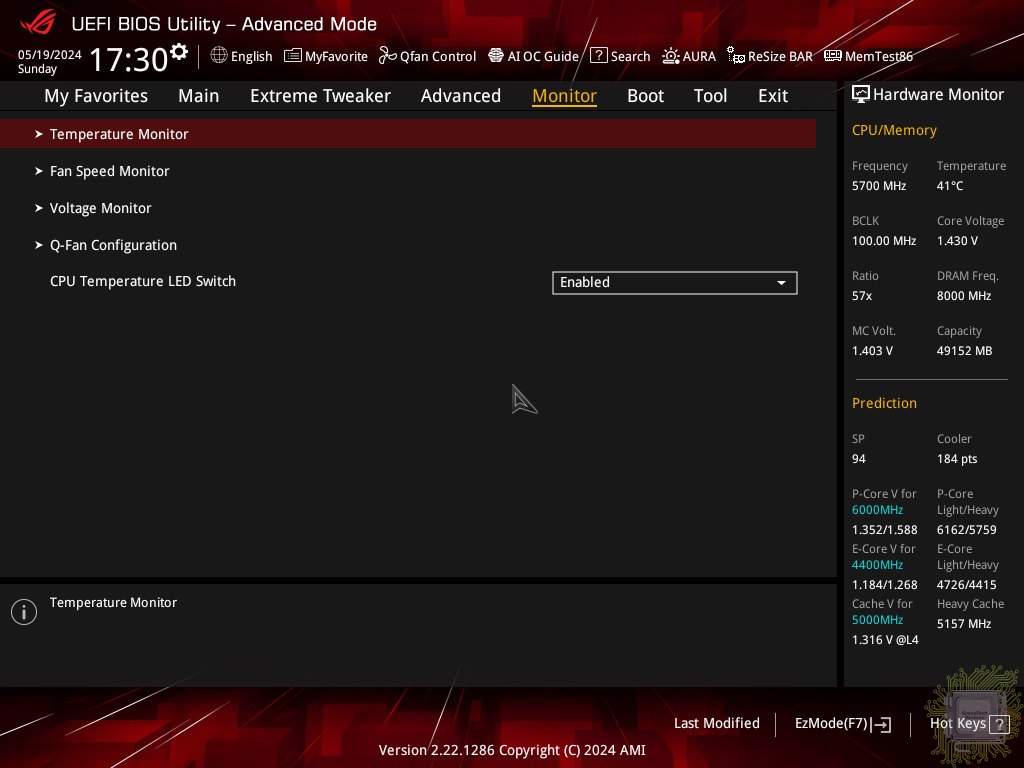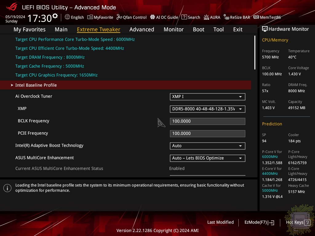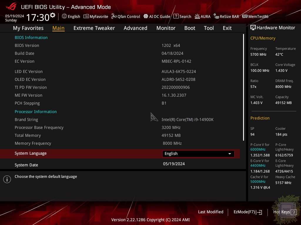 BIOS рассматриваемой платы выполнен в стиле Republic Of Gamers, т.е. все представлено в традиционных красно-чёрных цветах.