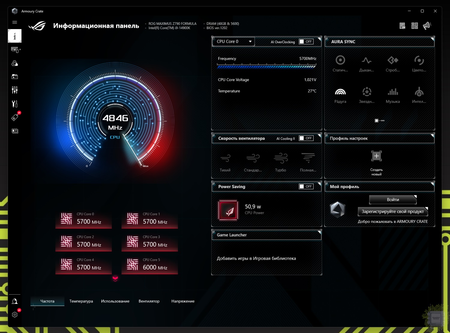 Для управления системой и мониторинга её параметров производитель комплектует плату фирменным программным обеспечением — Armoury Crate.