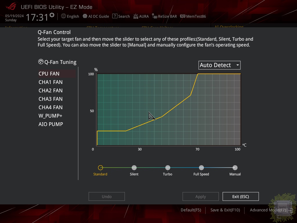 Присутствует возможность настроить профили работы пяти вентиляторов и двух помп для системы жидкостного охлаждения.