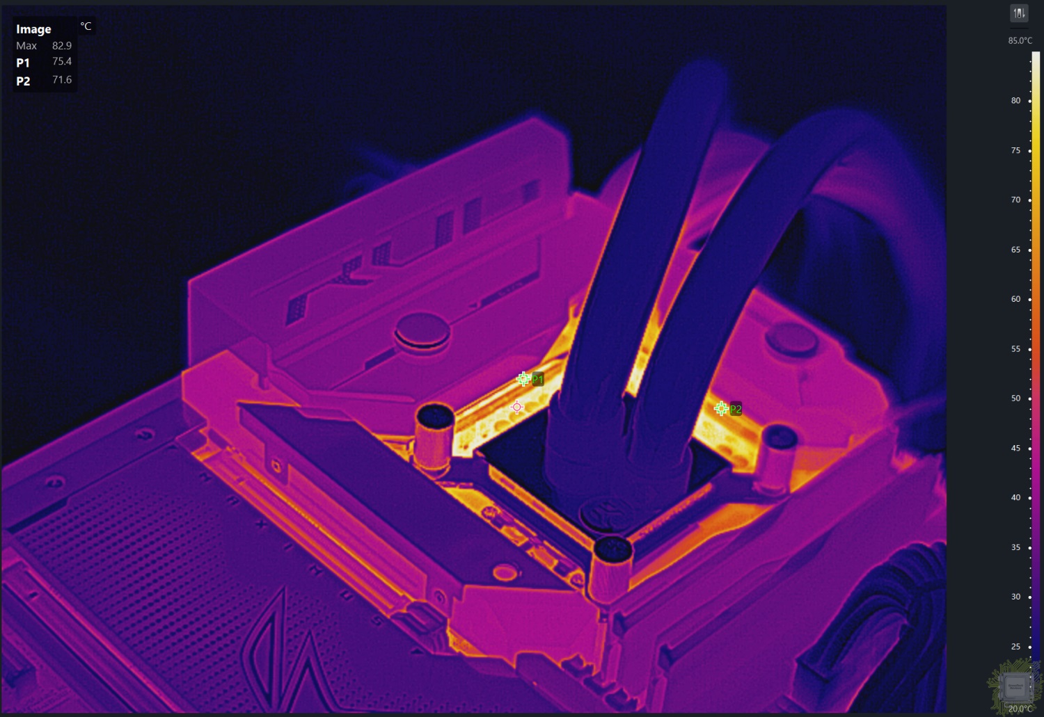 Теперь самое интересное — о температуре подсистемы питания. Энергопотребление процессора на момент тестирования составляло 240-250 Вт.