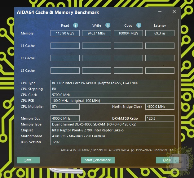 Для тестирования был взят процессор Core i9-14900K и память G.Skill Trident Z5 с XMP профилем 8000 МТ/с.