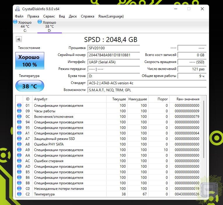 Информация о накопителе из утилиты CrystalDiskInfo.