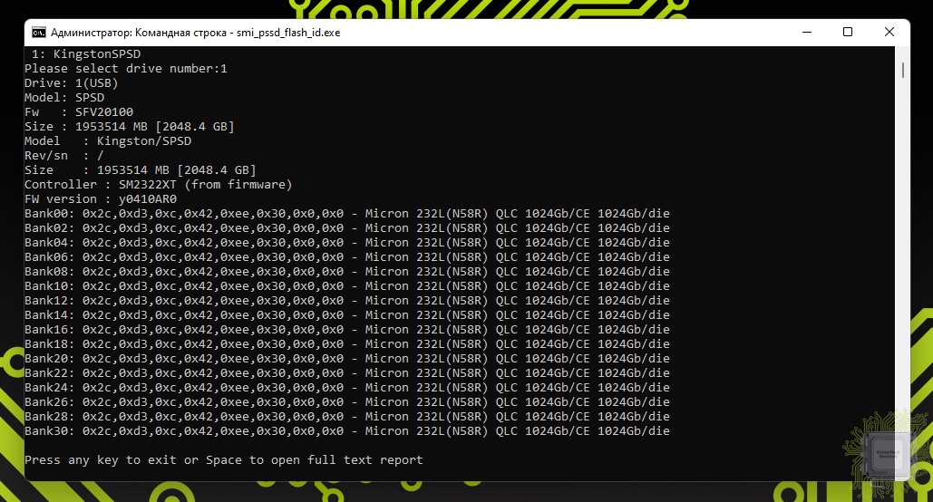 Информация из утилиты Flash ID, которая описывает «начинку» накопителя.