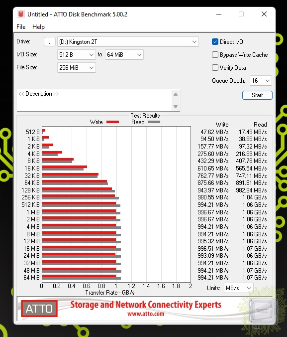 Скорости передачи данных в зависимости от размера блока в программе ATTO Disk Benchmark 5.00.