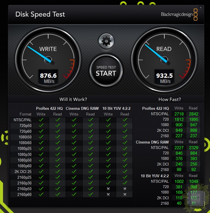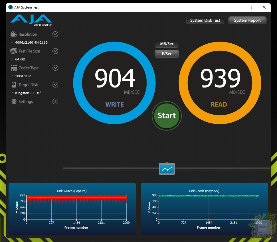 Симуляция записи 4K видео объёмом 64 ГБ проходит успешно — снижения скорости нет.