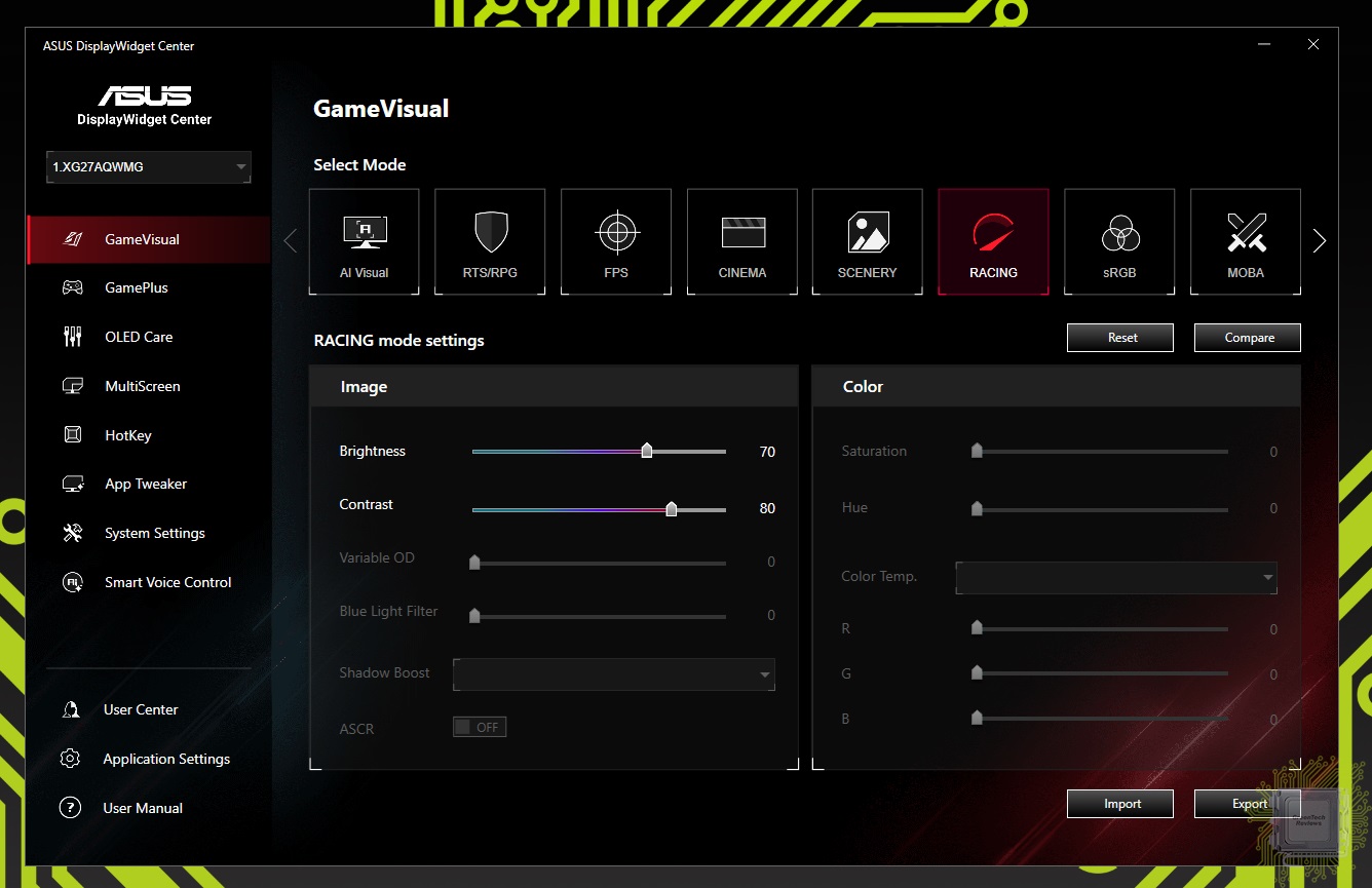Раздел GameVisual предоставляет доступные режимы изображения с возможностью их настройки.