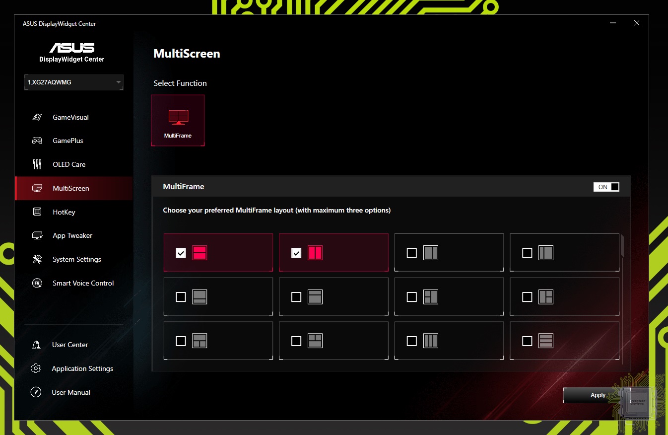 В разделе MultiScreen можно настроить разделение дисплея на несколько в рамках одной панели.