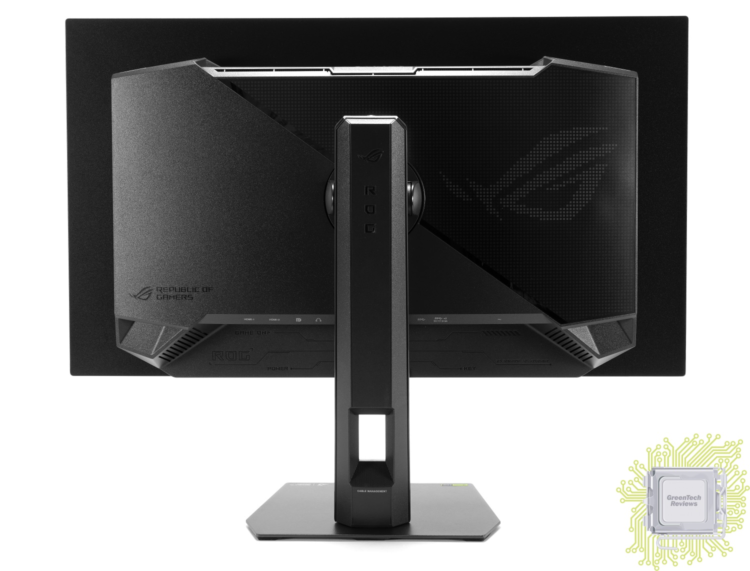 В отличие от старших моделей, подсветка у которых реализована в нескольких местах подставки (сзади, проекция), у данного монитора реализован только логотип бренда, который состоит из множества подсвечивающихся квадратиков.