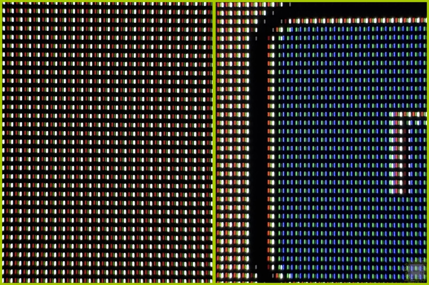 Новая структура пикселей дисплея этого монитора, наконец, избавляет его владельца от паразитных цветных вертикальных или горизонтальных полос у отображаемых геометрических объектов. Единственный недостаток такой структуры пикселей — мелкие шрифты могут выглядеть немного странно, но начиная примерно с 12 размера проблемы уже нет (зависит ещё от самого шрифта).